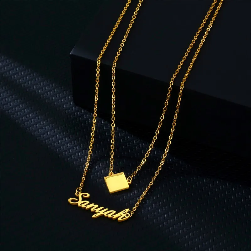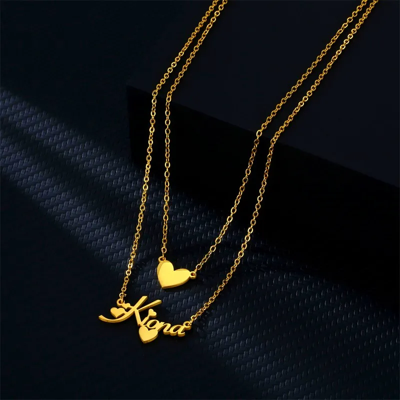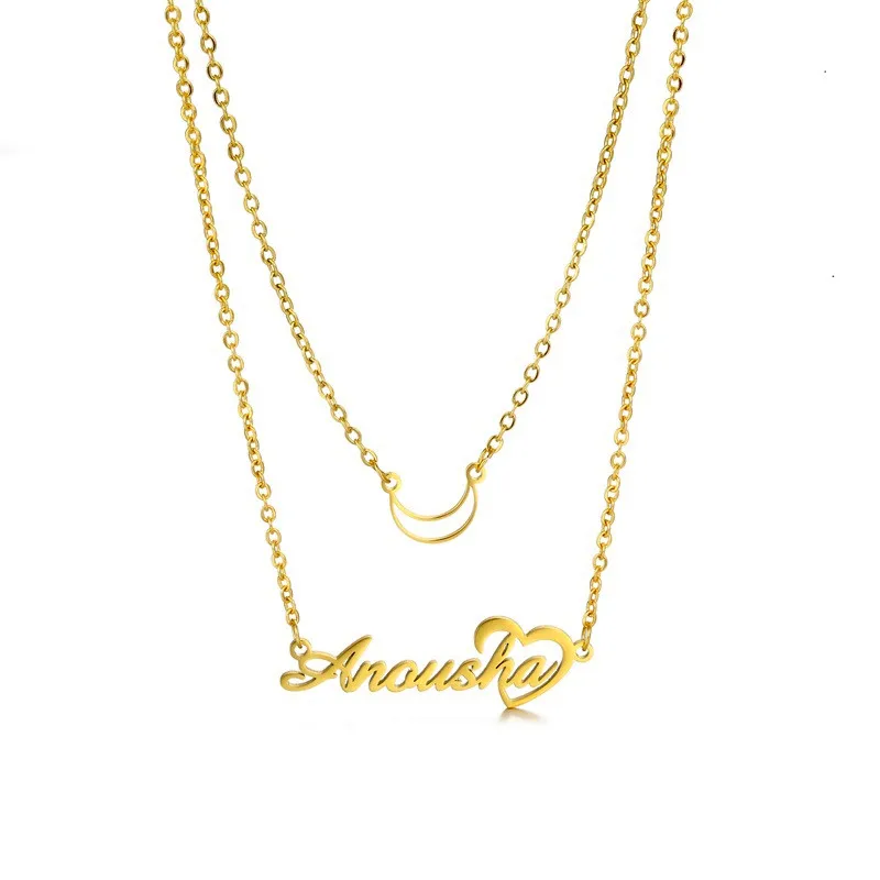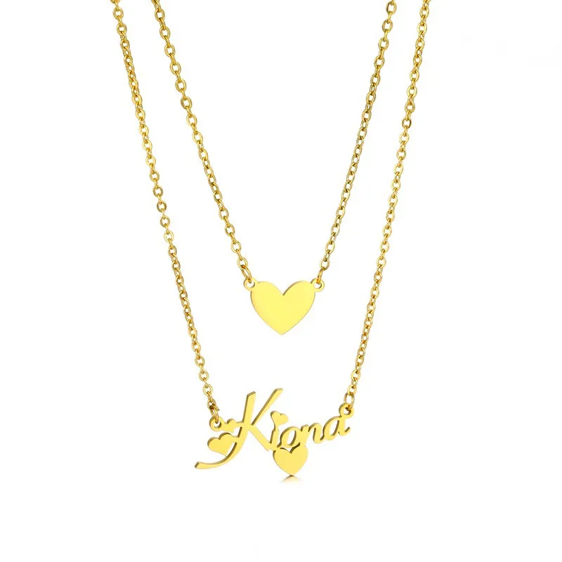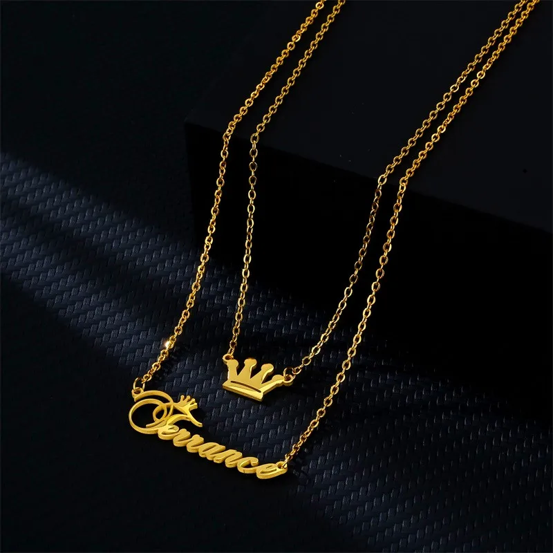 Индивидуальное модное Двухслойное ожерелье из нержавеющей стали с именем для женщин, индивидуальное золотое ожерелье с подвеской в виде короны на заказ, ювелирные изделия