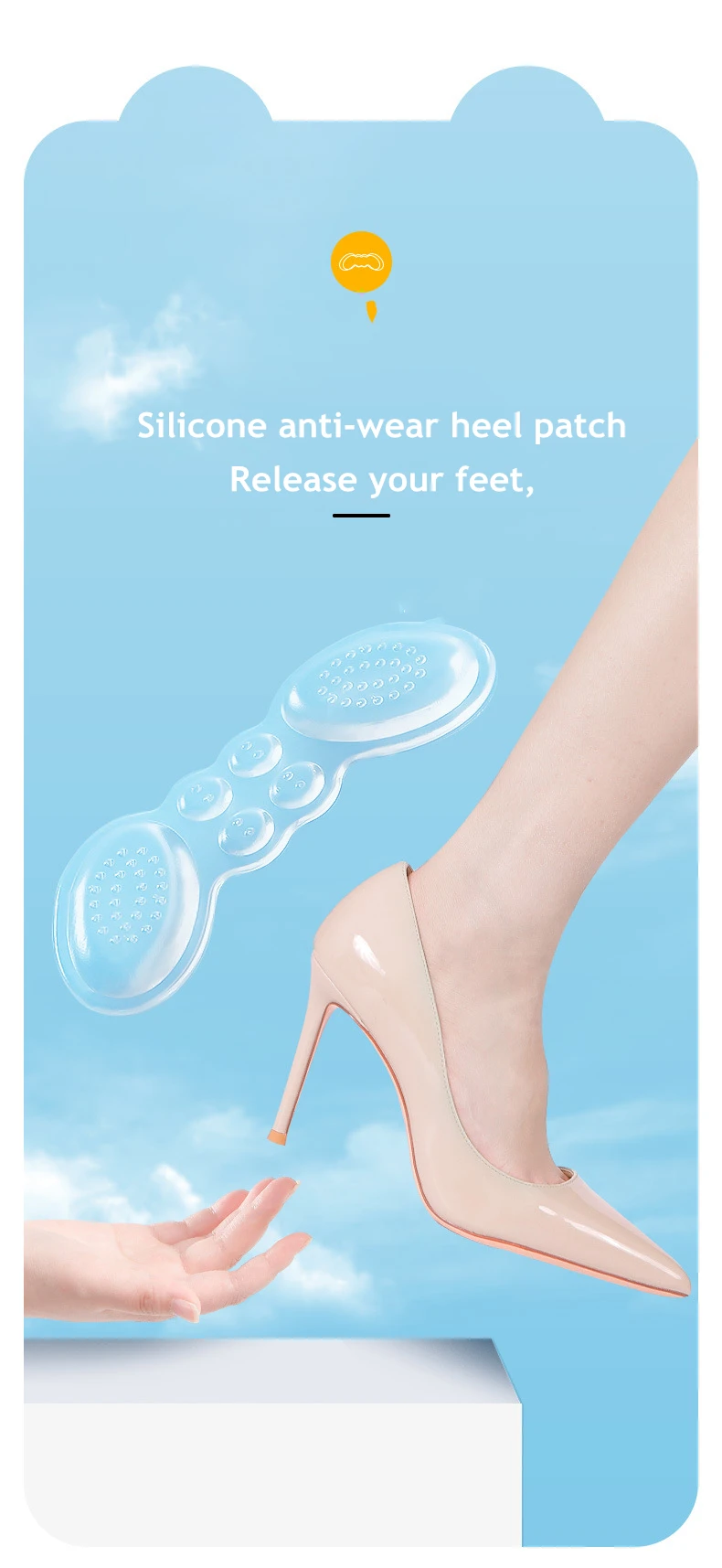 Силиконовые противоскользящие вставки для обуви на высоком каблуке,...