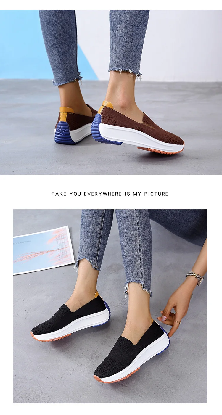 Женские туфли туфли на каблуке Кроссовки женские сетчатые на низком каблуке, легкие повседневные сникерсы с педалью, модная спортивная обувь