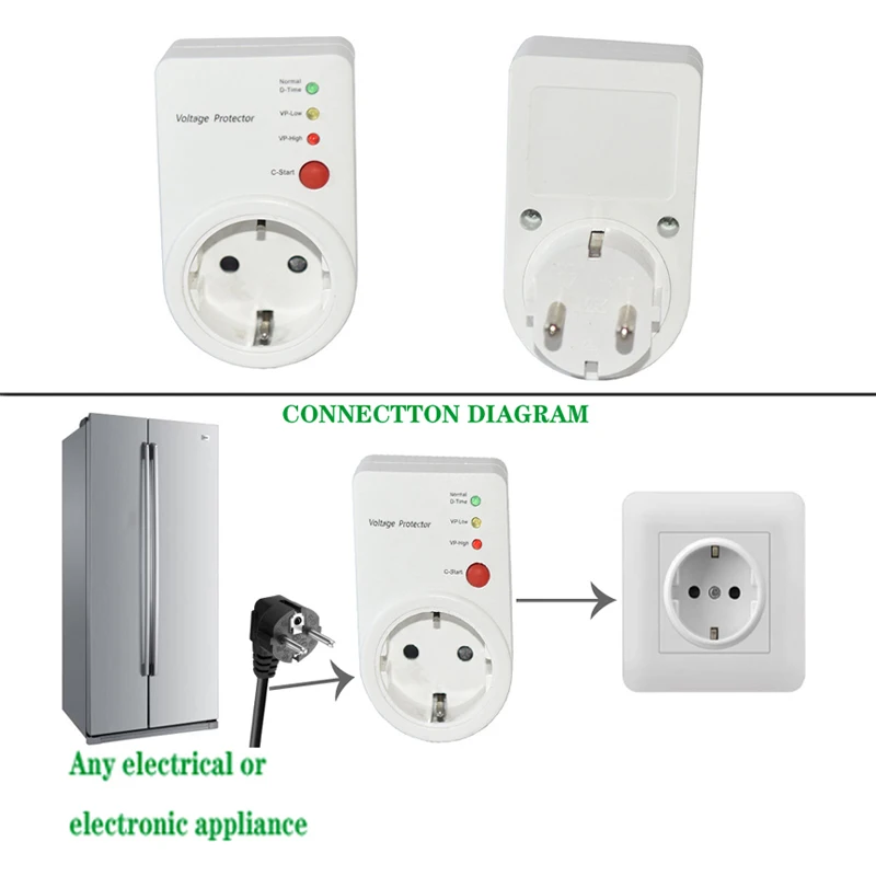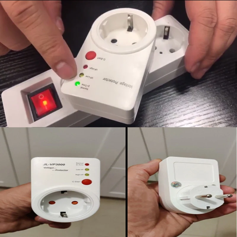 Инструкция по эксплуатации протектора напряженияЭто протектор напряжения, хорошо подходит для автоматической защиты бытовой техники в чехол под напряжением.Ультра-напряжение и остановка электричества, например. Это всегда может быть вредно для нормальной работы, сократить срок их службы,ИлиДаже сжечь компрессорные двигатели для кондиционера, Холодильник и морозильные шкафы, если напряжение питания слишком низкое илиСлишком высокий.Особенно, мгновенная остановка питания и перезапуск питанияС электрической сеткой создает сильное влияние напряжения, которое оченьОпасны и могут повредить компрессоры,Который может немедленно отсоединить источник нагрузки и обеспечить компрессорС повторным подключением питания во время перезапуска с идеальным результатом защиты компрессора Применение1Вставьте защитную штепсельную вилку в розетку питания, входящую в воздух-Кондиционер, холодильник, Морозильный шкаф в выходную розеткуПротектор 2. Когда в стойле этот протектор, можно повесить его прямо на стену через висячее отверстие, его задний Чехол 3 Obiects применимости кондиционер, холодильник, Морозильный шкаф Примечание 1. Не устанавливайте этот протектор в положении, подверженном воздействию высокой температуры и влаги 2 использование в грязной среде и сильное окисление с вилкой может привести протектор к раннему повреждению Характеристики: 1,220 В, 50 Гц, 110 В, 60 Гц 2. Диапазон напряжения: 90 +/-3% ~ 130 +/-3%(60 Гц); 180 +/-3% ~ 250 +/-3%(60 Гц); 3. Диапазон тока: 16A (макс.) 4. Время задержки запуска 180S 5. Светодиодный ЖК-дисплей для отображения рабочего напряжения и состояния. 6. 5 типов защиты (перенапряжение, под напряжением, прерывание, всплеск/Спайк, защита от перегрузки Размер продукта: 5,2*9*3,5 см Применение: для телевизора, LCD, плазмы, DVD, домашнего кинотеатра, ПК, ноутбука,Стиральная машина, холодильник, сушилка, духовка, посудомоечная машина и другие бытовые приборыБез компрессора.