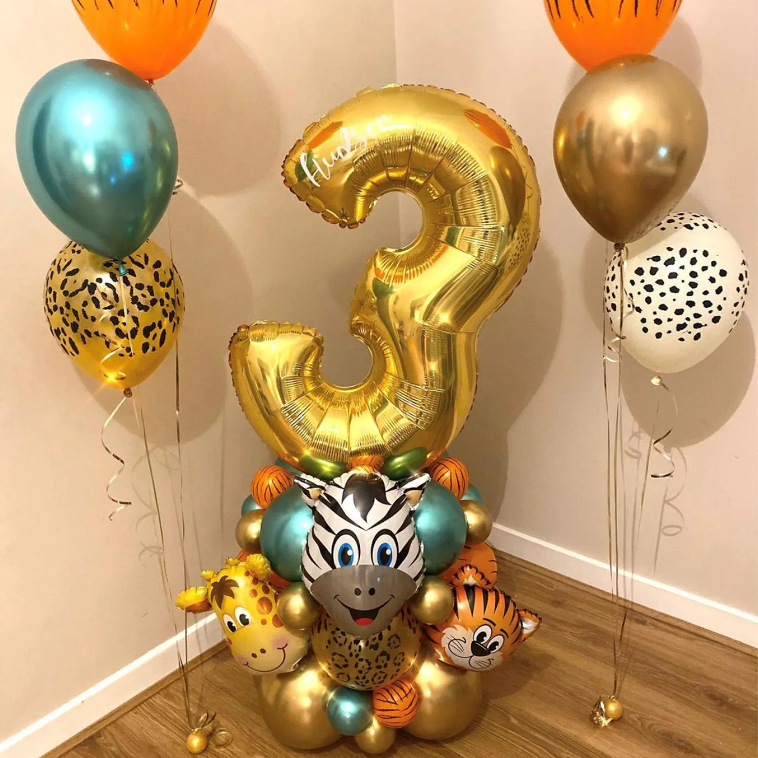 1 комплект с изображением животных из джунглей на день рождения шары-цифры шар Forsest лев тигр Зебра гелий Globos для надпись «Wild One» вечерние Декор детского дня рождения