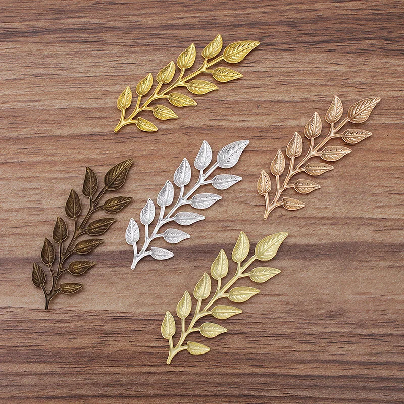 20 шт.лот металлические латунные штампованные ветки, листья 19*64 мм, ветки из оливковых листьев, сделай сам, ювелирные изделия, аксессуары ручной работы, оптовая продажа