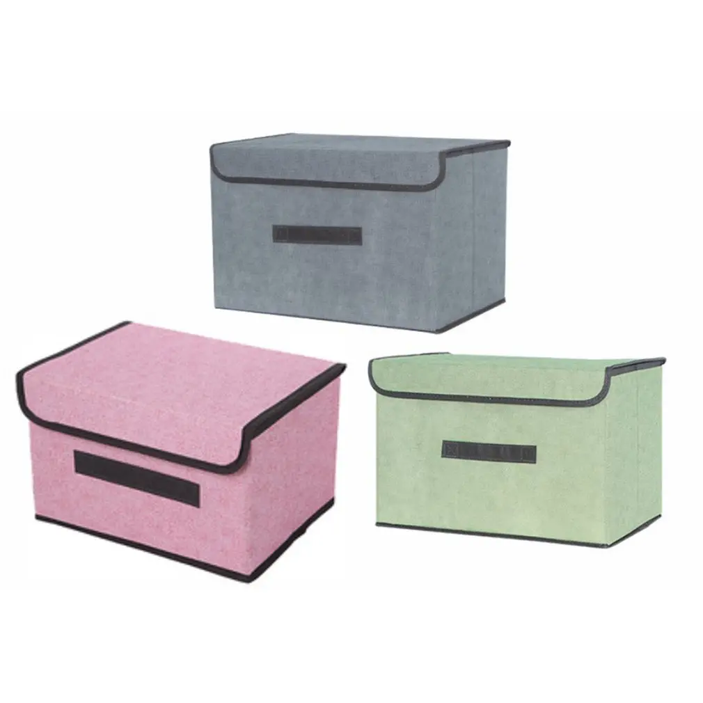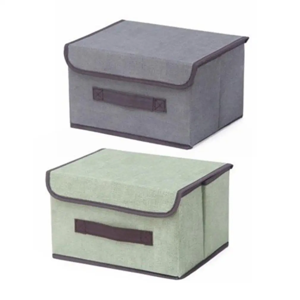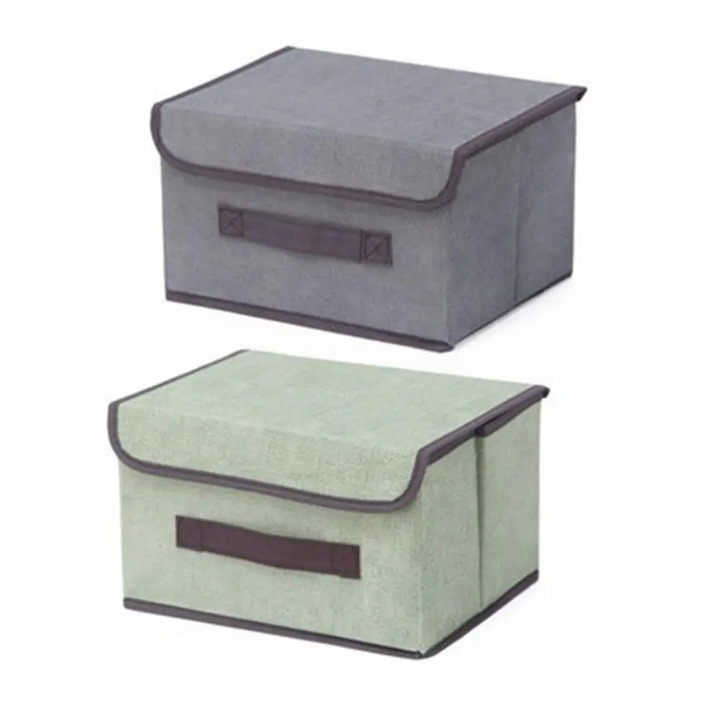 Ящик для хранения из хлопка и льна с крышкой, 2 размера, органайзер для одежды, носков, игрушек, закусок, мелочей, Набор тканевых коробок, косметика для дома
