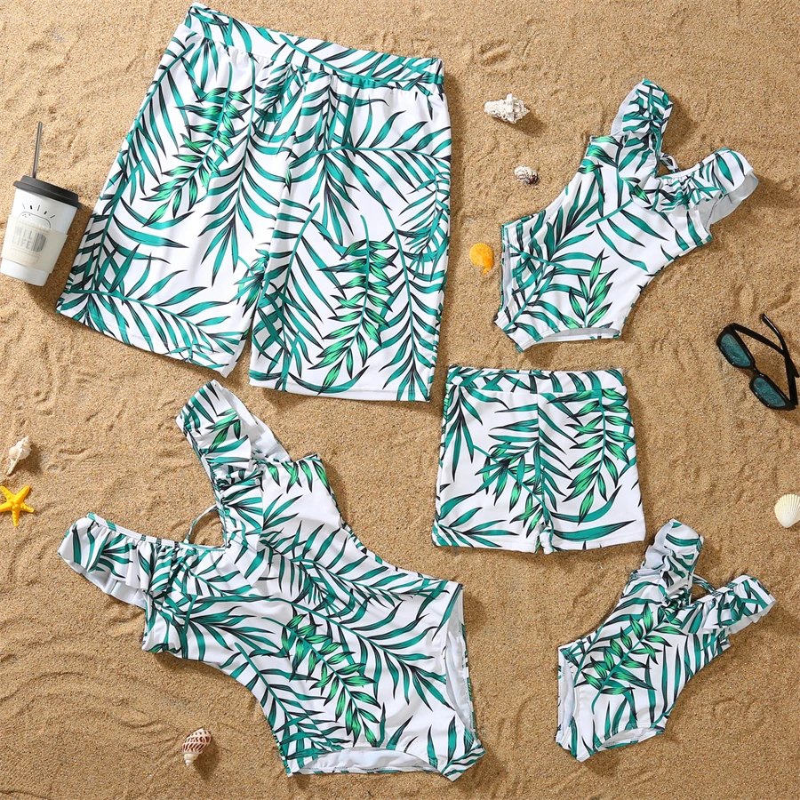 Пляжная семейная Одинаковая одежда, наряды, семейные купальники, полосатый одинаковый купальник, бикини для матери, дочери, плавки для отца, сына