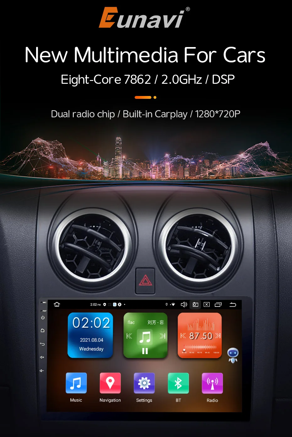 Автомагнитола Eunavi 2 Din, мультимедийный проигрыватель на платформе Android 11 для Nissan Qashqai J10 X TRIAL 7862, 2006-2007, головное устройство 2 Din, DVD, GPS