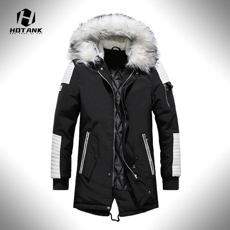 Новинка 2022, мужская зимняя куртка, парки, пальто с меховым воротником, модные утепленные хлопковые куртки с флисовой подкладкой, мужское повседневное пальто в стиле пэчворк