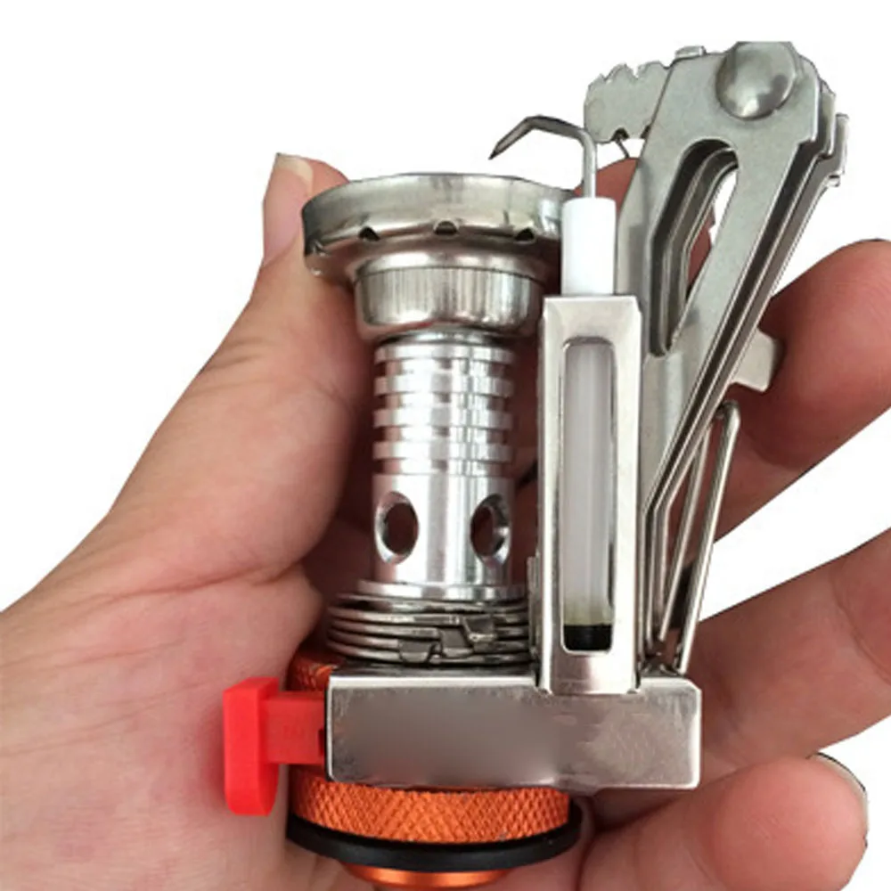 Портативная газовая плита, туристическая мини-горелка с пьезозажиганием и ложкой