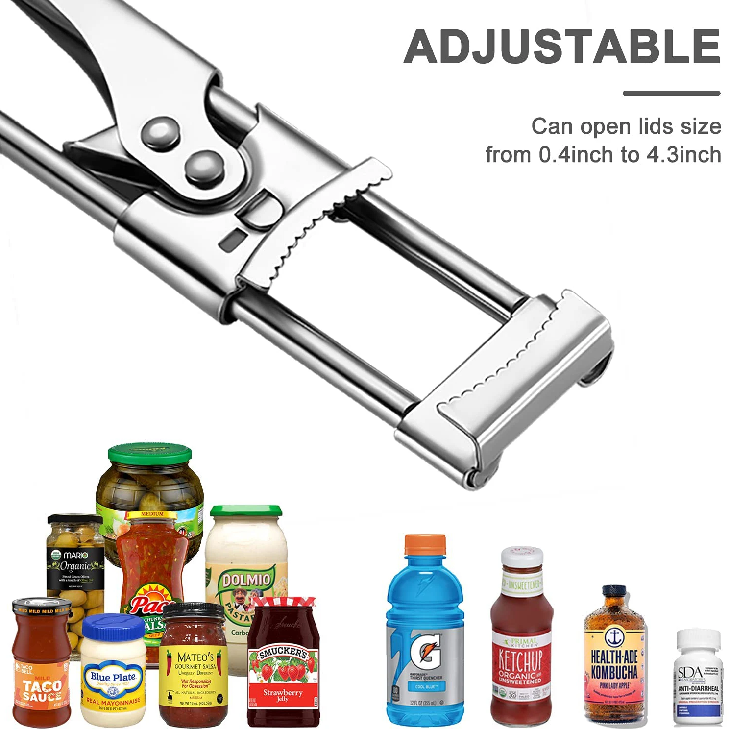 Открытые банки или бутылки, которые имеют плотное уплотнение, могут быть жесткими для всех. Эти консервные банки из нержавеющей стали являются отличным Открывателем для бутылок, идеально подходит для людей с артритом и слабыми руками пожилых людей, женщин, детей многофункциональный регулируемый ручной консервный нож для крышки --- Простой нож, гибкий и безопасный Регулируемый дизайн, это энергосбережение, Простой в использовании, безопасный, подходит для открывания бутылок разных размеров.