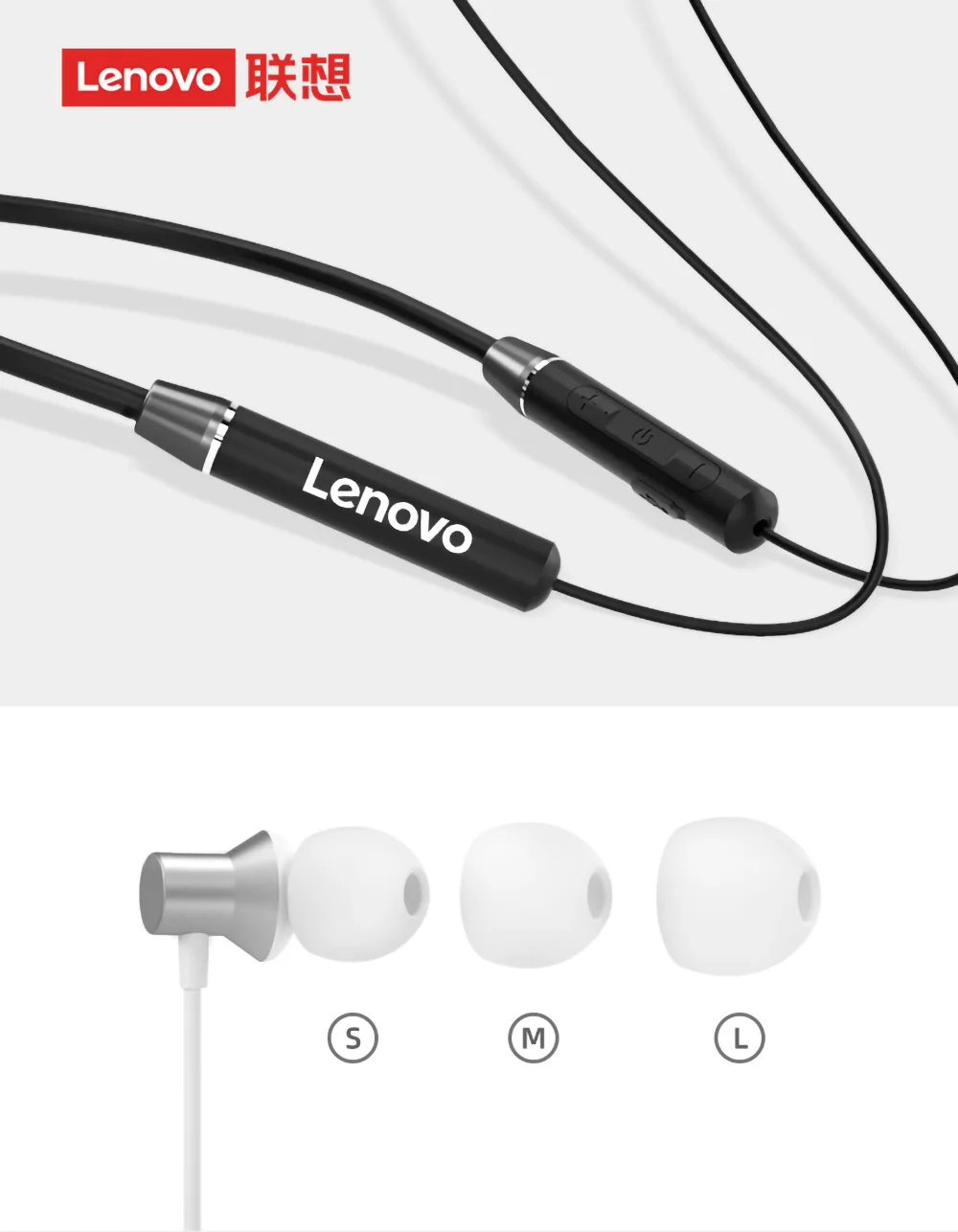Наушники Lenovo Bluetooth 5,0, беспроводная гарнитура, магнитные наушники с шейным ободом, водонепроницаемость IPX5, спортивные наушники-вкладыши с микрофоном с шумоподавлением