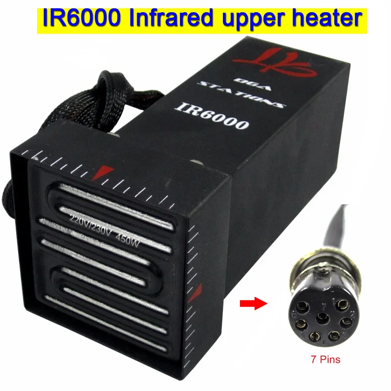 Инфракрасный верхний нагреватель, встроенная керамическая пластина 450 Вт для паяльной станции IR6000 BGA с охлаждающим вентилятором, 7-контактный разъем 220 В