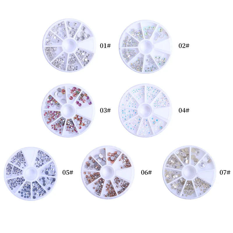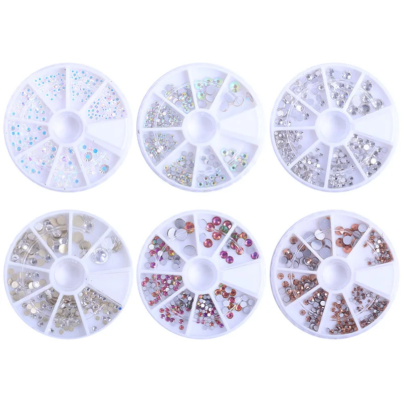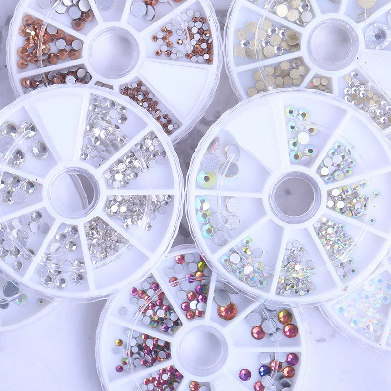 Стразы для ногтей с плоским дном, разные цвета, блестящие маленькие нестандартные бусины для ногтевого дизайна, 3D украшения, камень в колесе