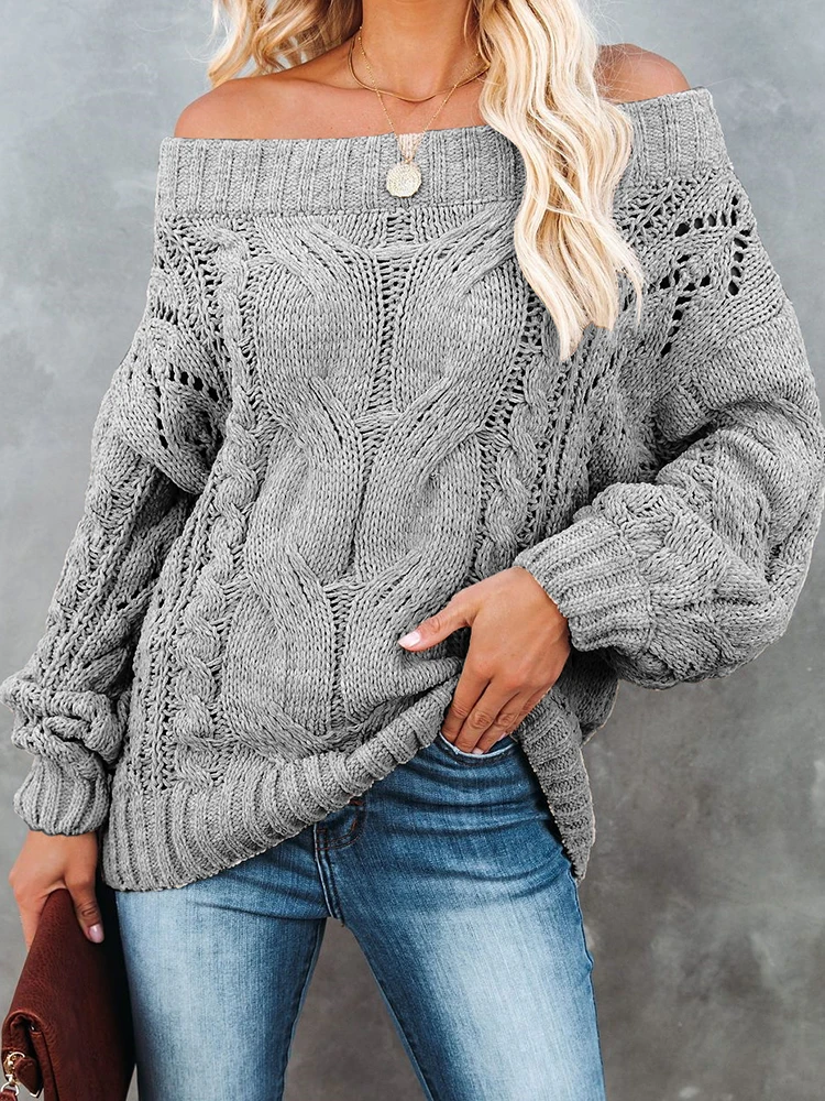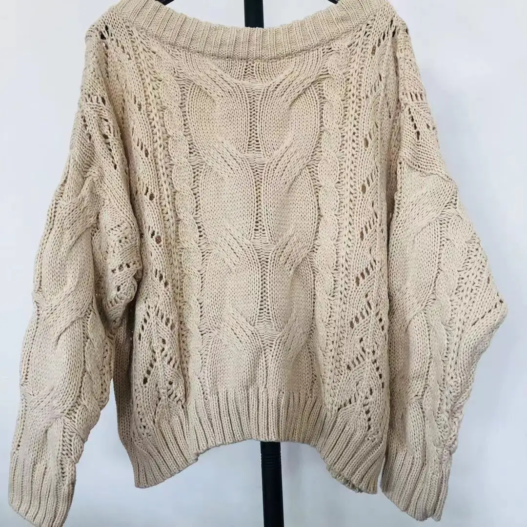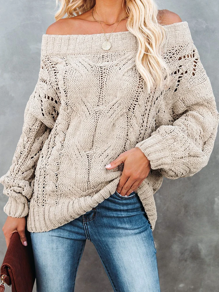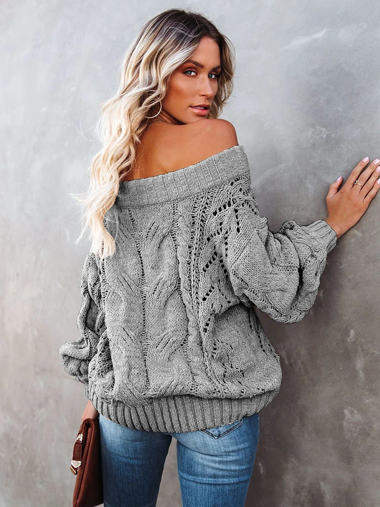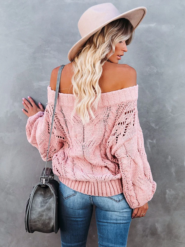 Женские вязаные сексуальные пуловеры, свитер, зимний женский Повседневный однотонный джемпер цвета хаки с открытыми плечами и вырезами, вязаная одежда