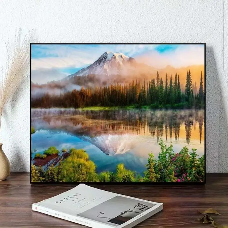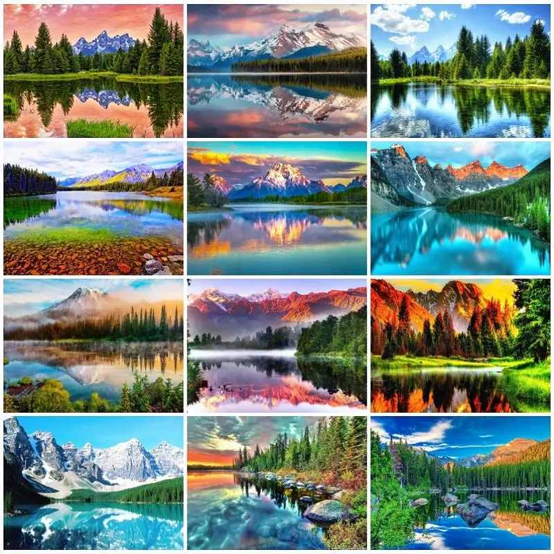 Картина маслом DIY, Набор цифр, озеро, Горный пейзаж, ручная работа, картины по номерам, картина маслом для дома, комната, настенная живопись