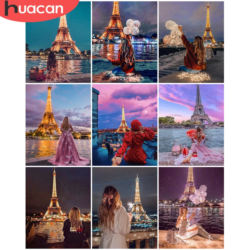 HUACAN краска по номерам девушка рисование на холсте краска ng ручная краска ed для взрослых картина башня декорации наборы домашний декор DIY подарок