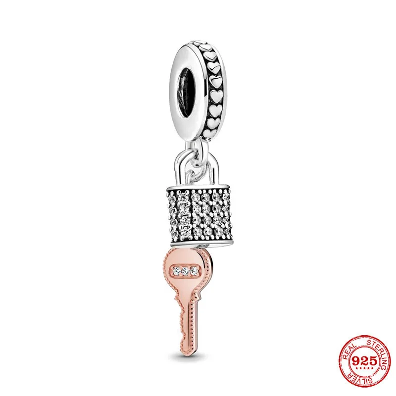 Новинка, Серебряный кулон в виде ключа с замком, подвеска-Шарм, подходящий для оригинального браслета Pandora, серебро 925 пробы, подарок на удачу для изготовления ювелирных изделий