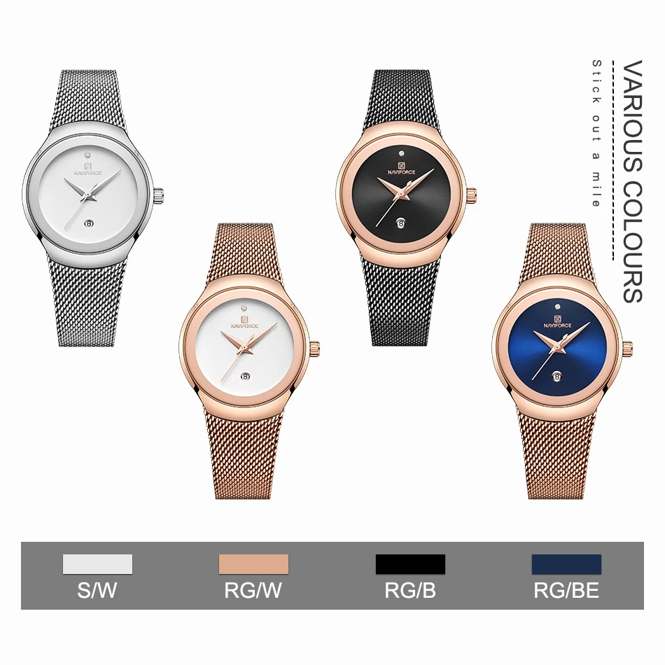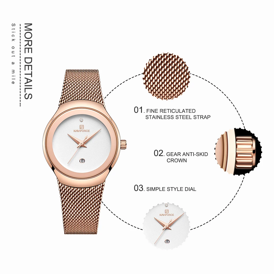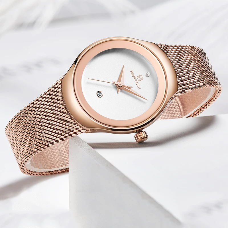 Часы наручные NAVIFORCE женские кварцевые, модные наручные, с браслетом из нержавеющей стали, с водонепроницаемостью, 2021