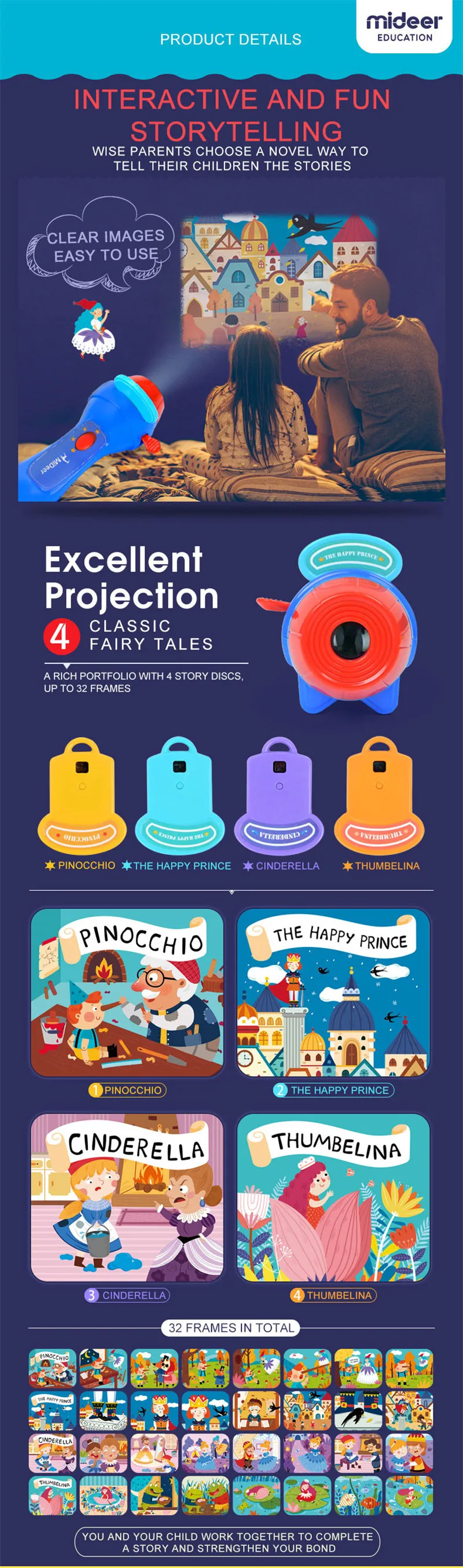 Проекционный факел MiDeer Story с ночным светильник Том, Детские спящие истории, фонарик, светящаяся игрушка, обучающие игрушки для детей