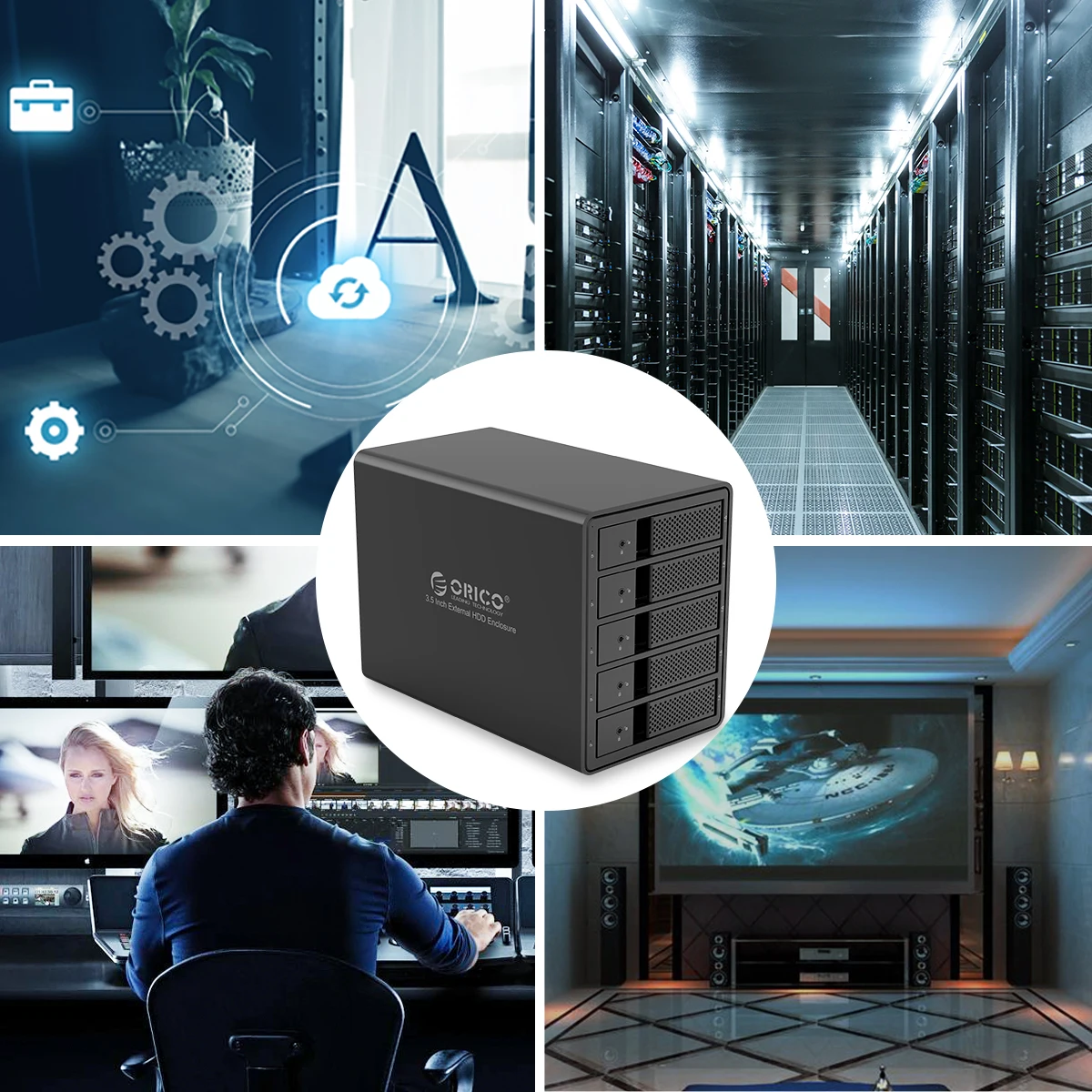 Корпус внешнего жесткого диска ORICO 5 bay-это быстрый и простой способ увеличить объем памяти. Можно установить Пять 2,5-дюймовых жестких дисков SATA HDD. И максимальной общей емкостью 80 ТБ (16 ТБ x 5)