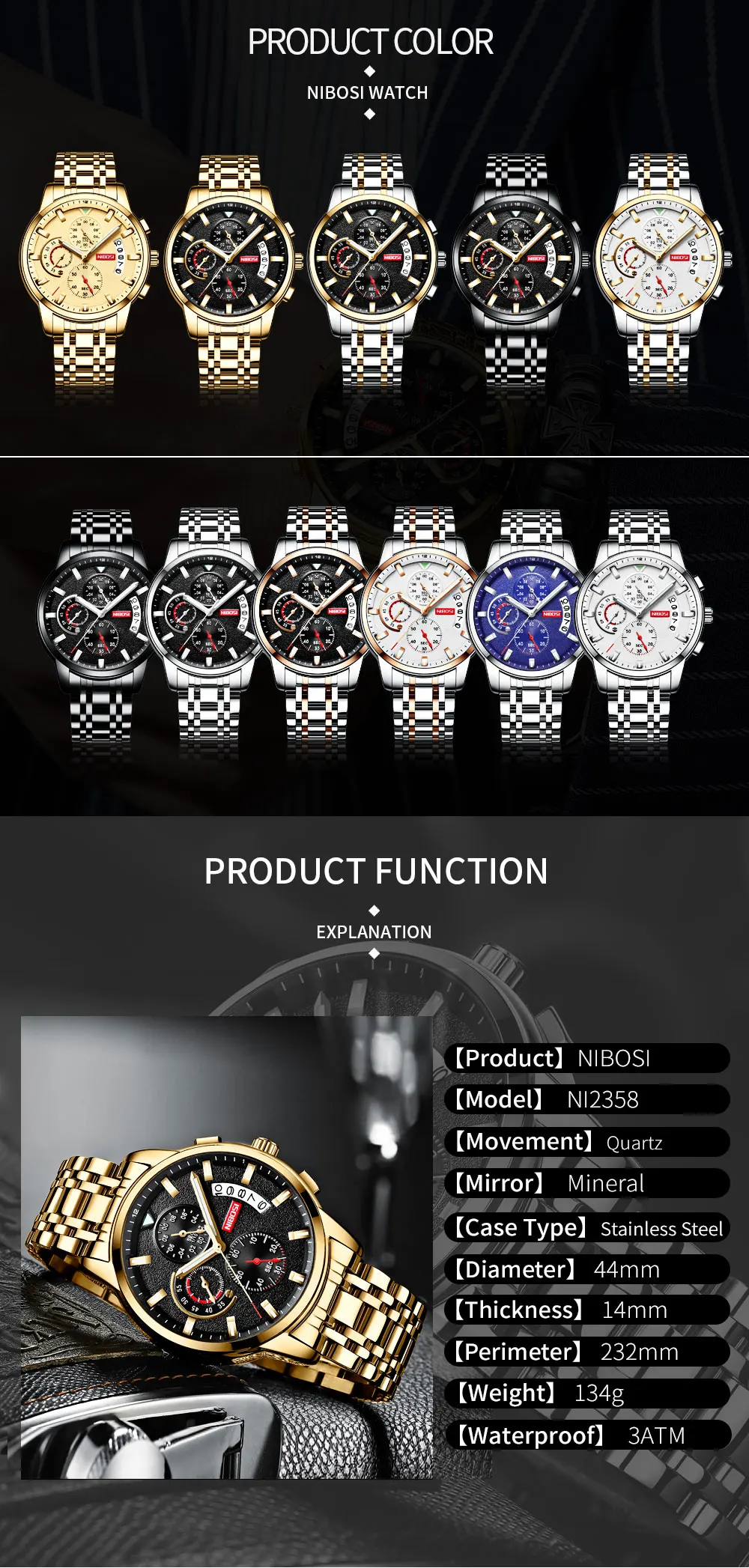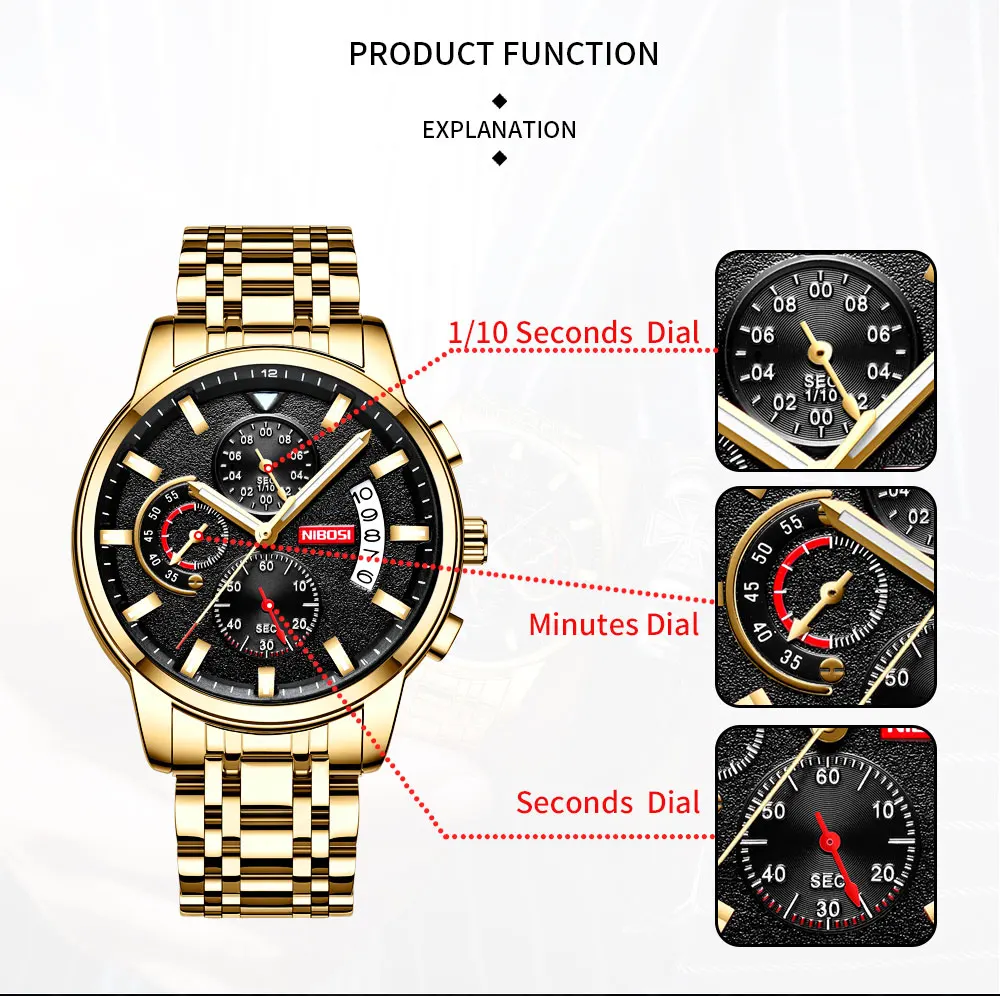 Новинка 2022, модные мужские часы NIBOSI из нержавеющей стали, спор...
