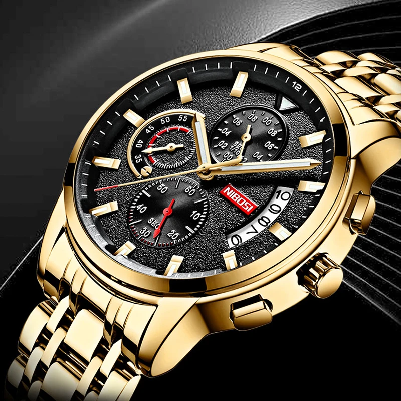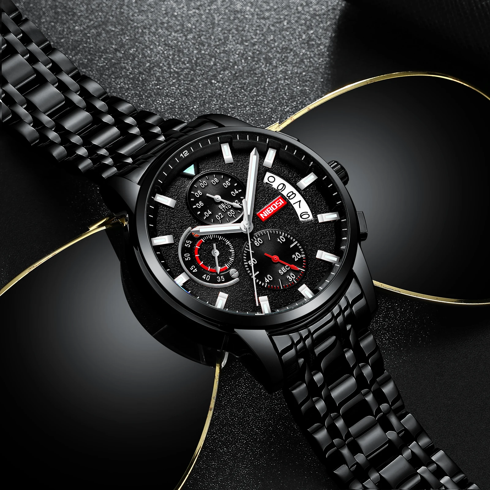 Часы наручные NIBOSI Мужские кварцевые, Брендовые спортивные стальн...