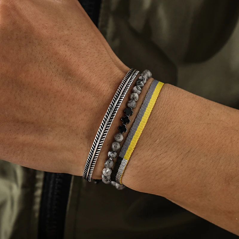 Браслет-крест мужской посеребренный из натурального камня и тибетского Будды