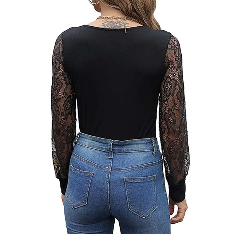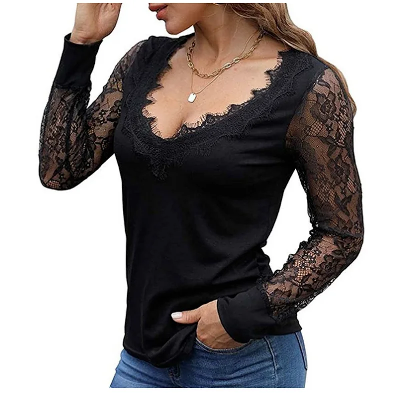 Женские футболки с длинным рукавом, кружевные, с блестками, с принтом, Сексуальная футболка с V-образным вырезом, облегающая, повседневные модные пуловеры, топы