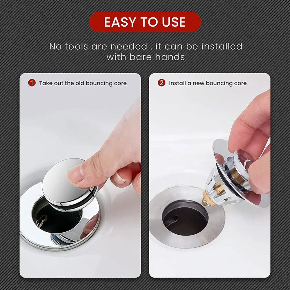 Слив Раковины из нержавеющей стали, отскок сердечника, тип пуш, сливной фильтр раковины, ловушка для волос с эффектом пуш-типа, раковина, фотоловушка