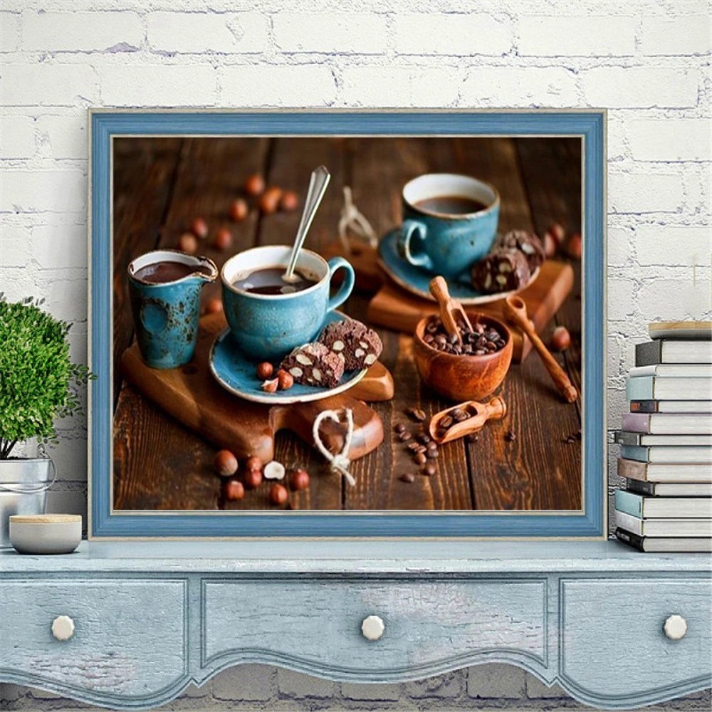 HUACAN DIY рамка краска по номеру кофейная чашка для взрослых картина по номерам пейзаж Акриловая Краска на холсте украшение дома