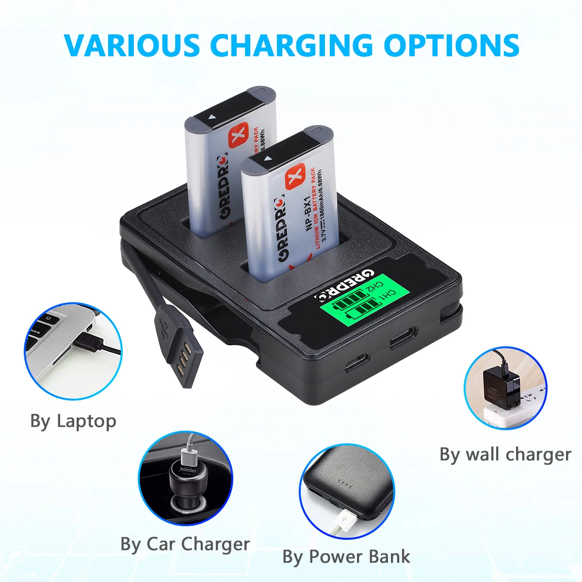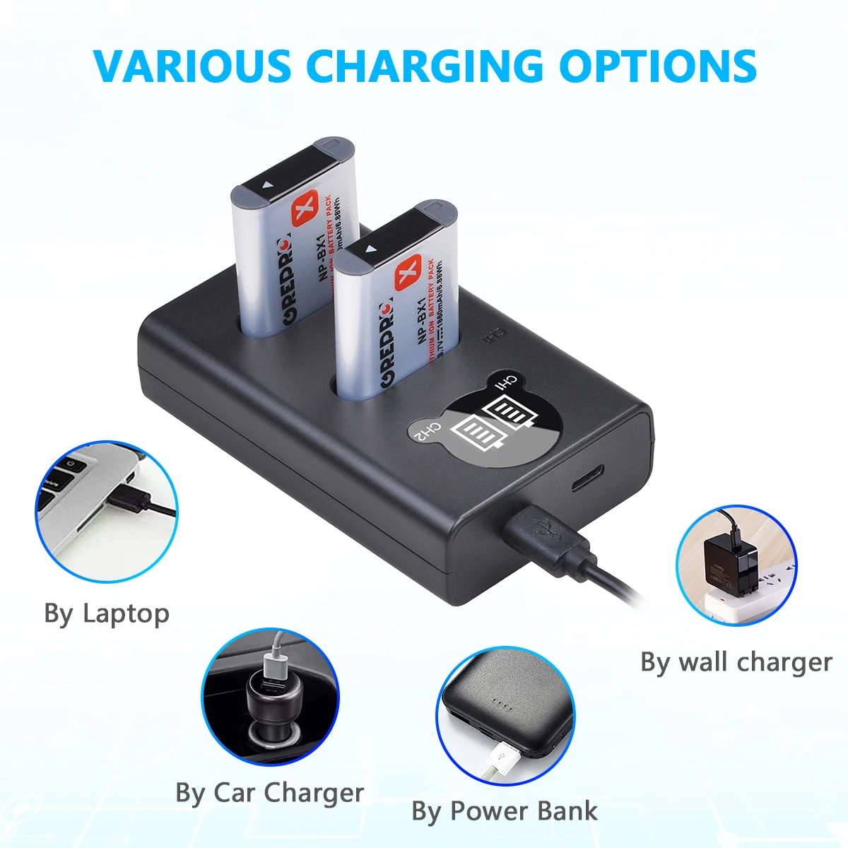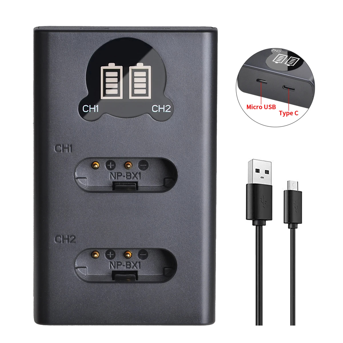 Зарядное устройство NP-BX1 с Type-c для Sony NP BX1, DCS-HX95, RX100, DSC-HX60 VI, DSC-RX100, WX350 AS300V