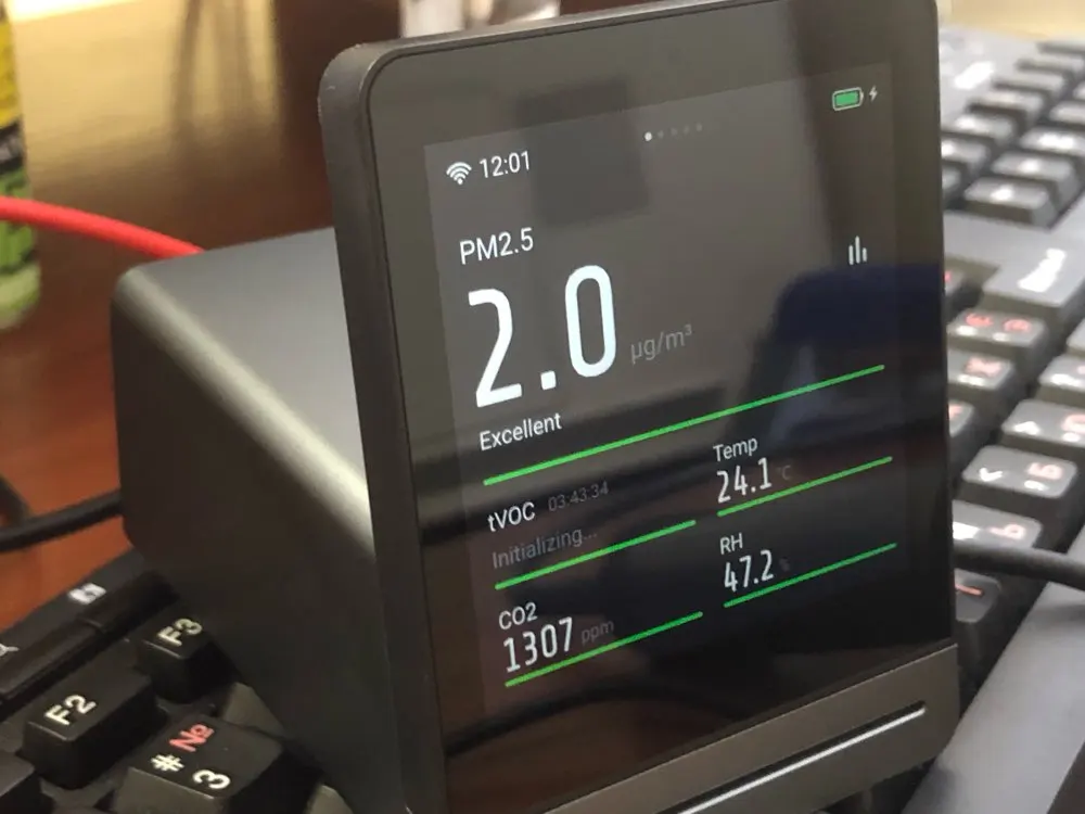 -Комплексный мониторинг воздуха в помещении и отображение: температура и влажность, PM2.5, tVOC, значение диоксида углерода