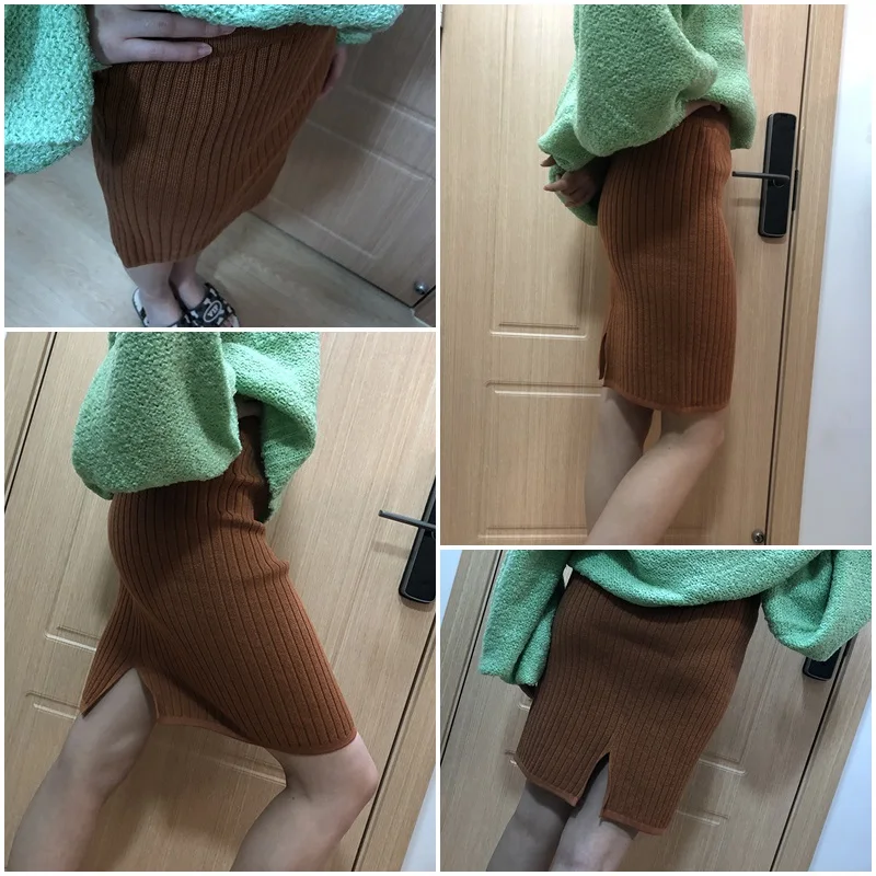 Для женщин осенняя вязанная длинная юбка, сексуальная юбка с завыше...