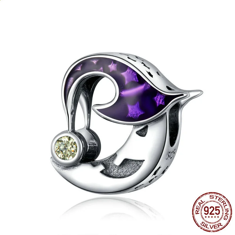 Новинка на Хэллоуин из стерлингового серебра 925 пробы, подвеска в виде Луны ведьмы, оригинальный браслет Pandora, ожерелье, серебро 925 пробы, ювелирное изделие, подарок на Хэллоуин