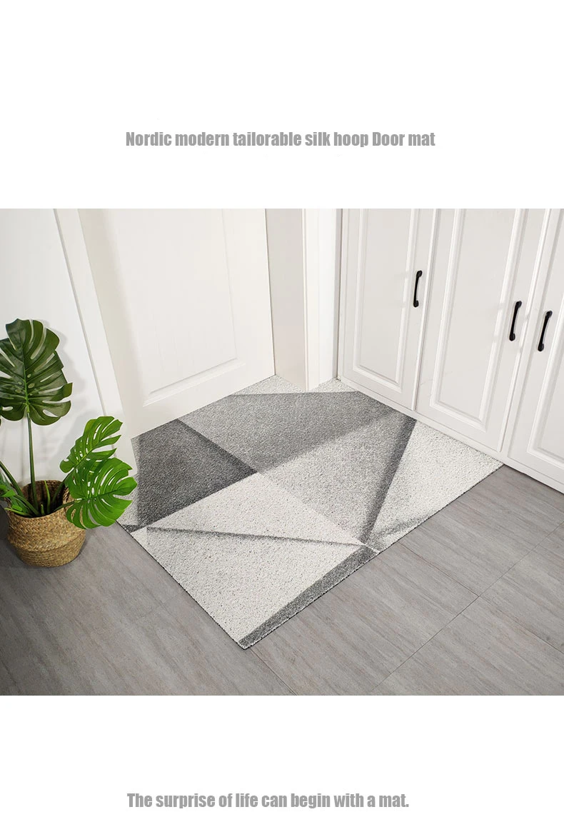 Коврик для входной двери с геометрическим рисунком, Противоскользящий коврик из ПВХ с шелковой петлей для гостиной, коридора, можно разрезать пылезащитный, под заказ