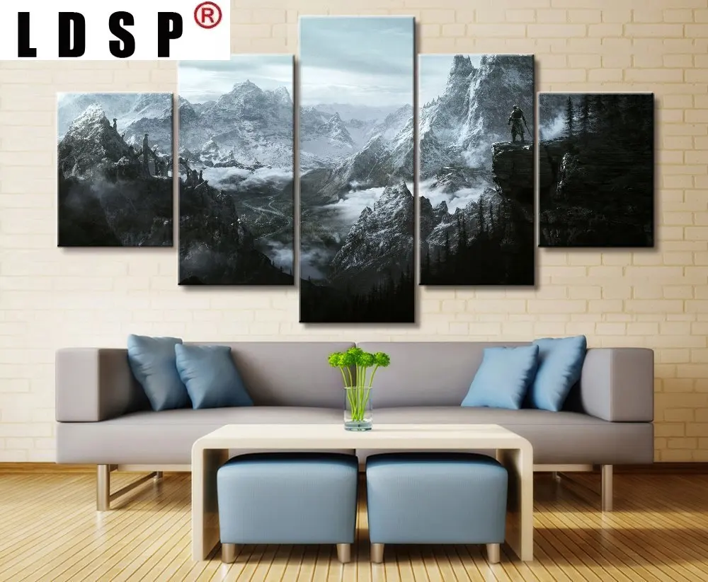 Модульная Картина на холсте LDSP для домашнего декора, 5 шт., картины в стиле игры Скайрим для пожилых людей, настенная Картина на холсте для дома