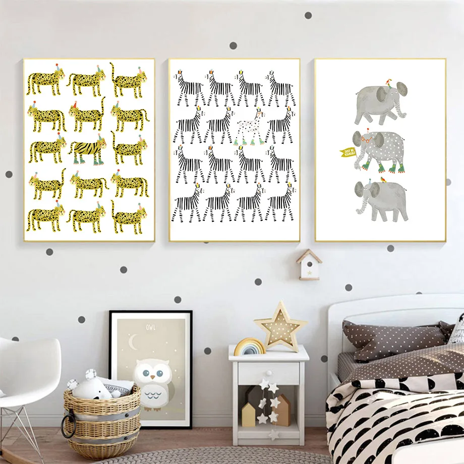 Настенная картина для детской комнаты, животные, лиса, олень, тигр,...