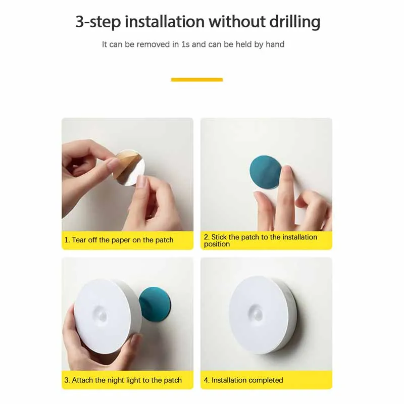 Беспроводной круглый светодиодный ночник с датчиком движения, питан...