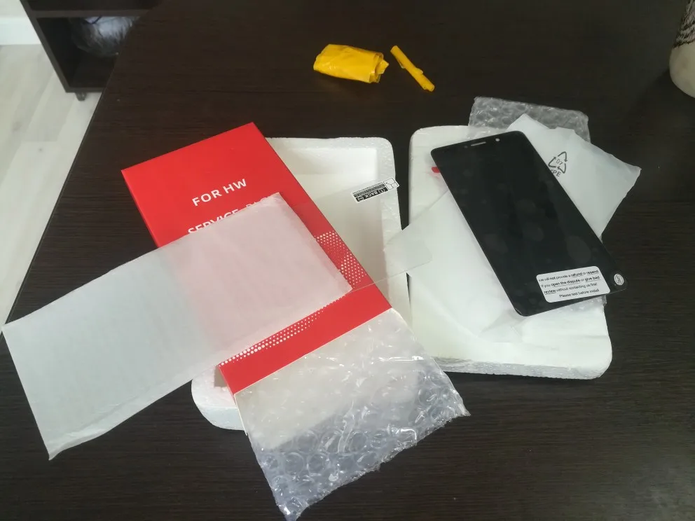 Ну первое он конечно не оригинальный, надпись на нем Huawei, проблема была в том что надпись была закрашена или наклейка так присохла что ее пришлось соскабливать, в общем все как обычно, немного тусклая яркость , тачскрин работает медленно, так рабочий. Пришел гдето в течении месяца.