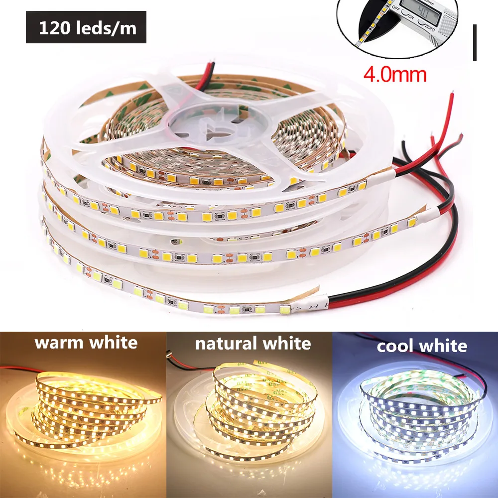 4 мм 2835 SMD 120LED sm DC12V Светодиодная лента естественный белый 3 мм SMD 2025 Светодиодная лента Гибкая светодиодная веревка лента Светодиодная лампа 5 мрулон