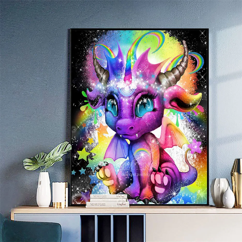 Алмазная живопись QIZITENG с мультяшным единорогом, милым драконом, вышивка крестиком сделай сам стразы, домашнее детское украшение, роспись, подарок