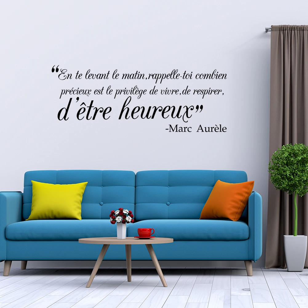 Наклейки Муро цитирование Марк Aurele En Te Levant Le Matin французские виниловые наклейки на стену для спальни гостиной