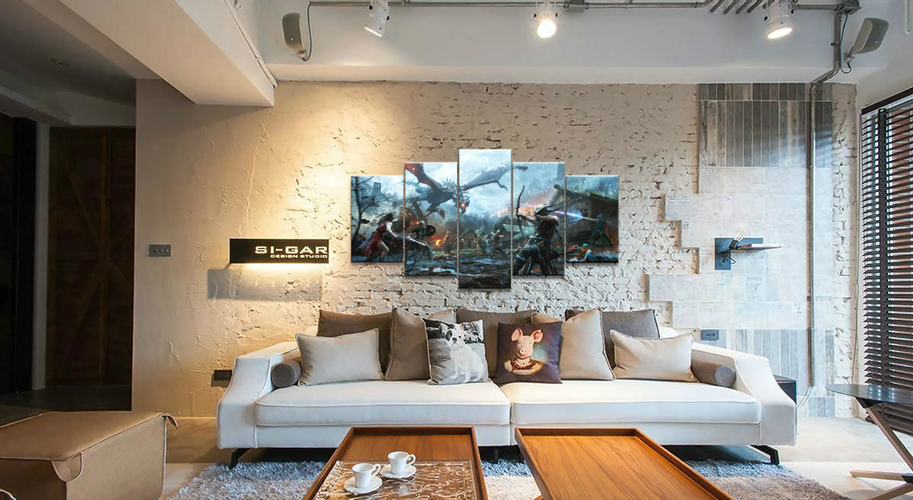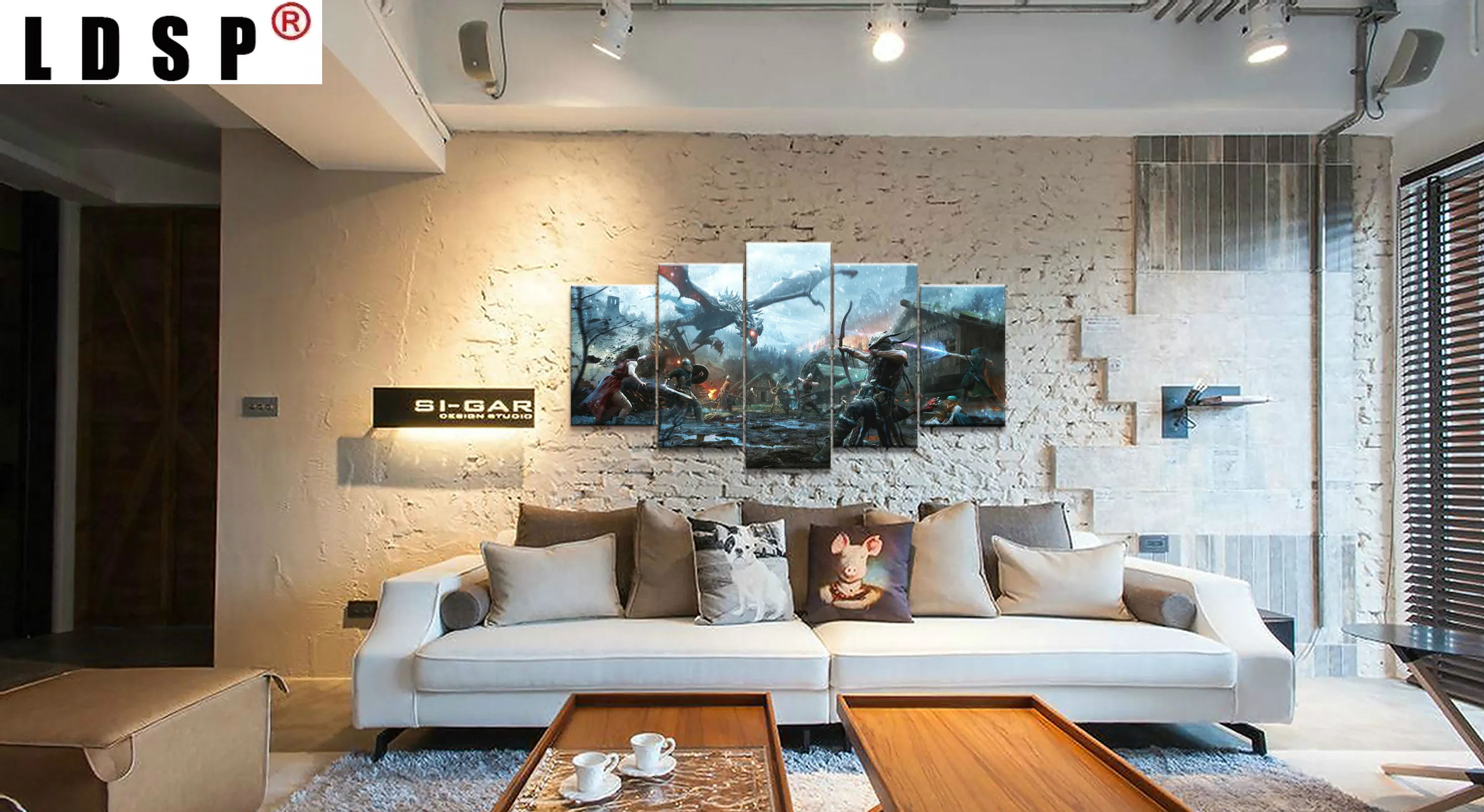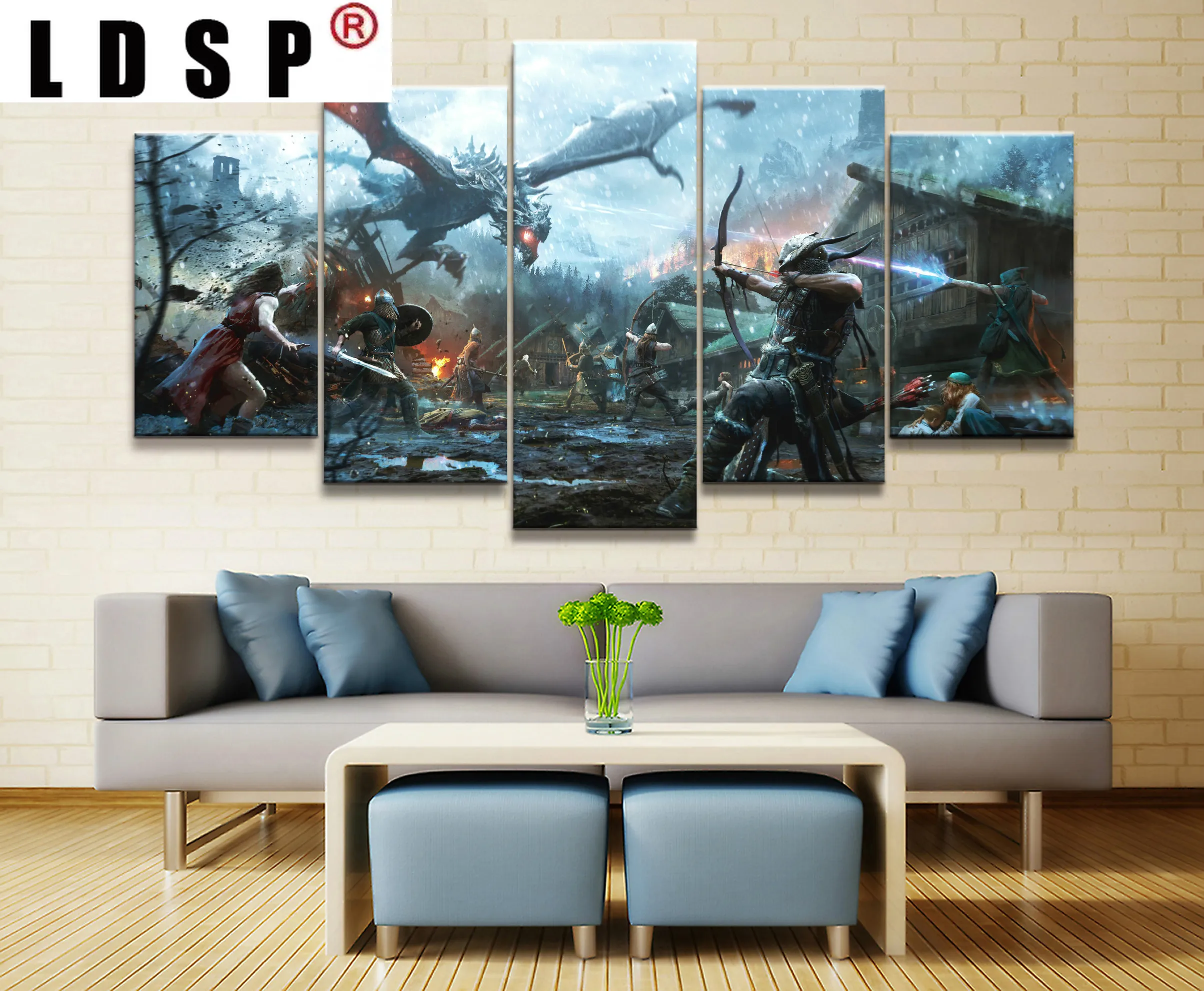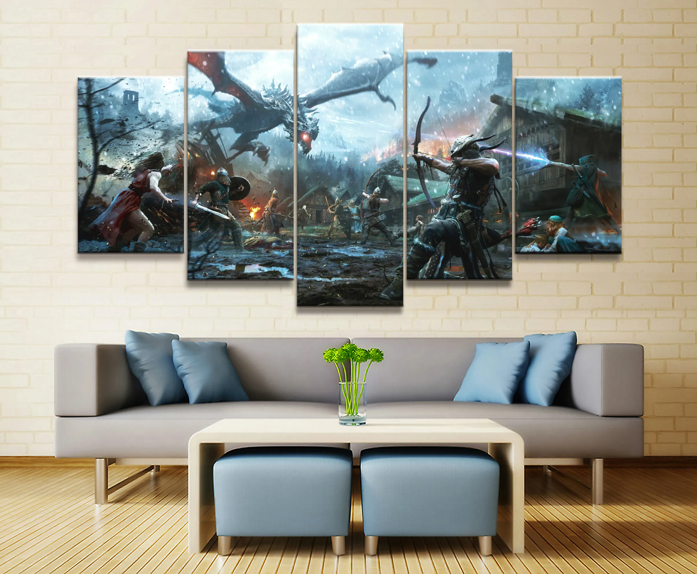 Модульная Картина на холсте LDSP, картина из 5 частей, с изображением персонажей игры в скайриме, Настенная картина для дома