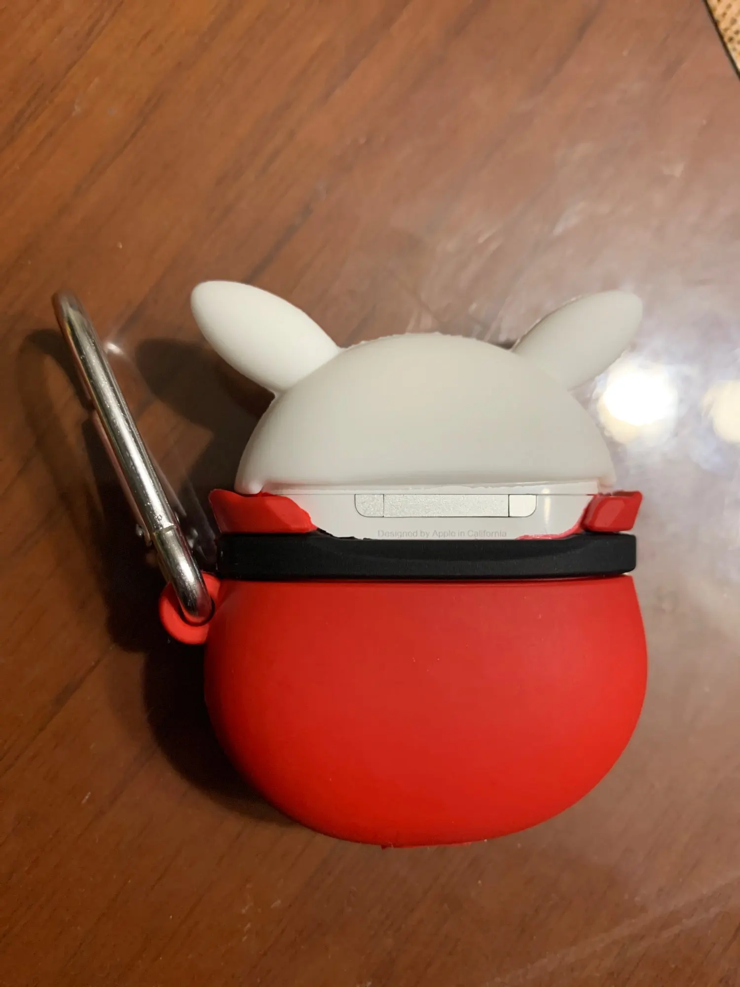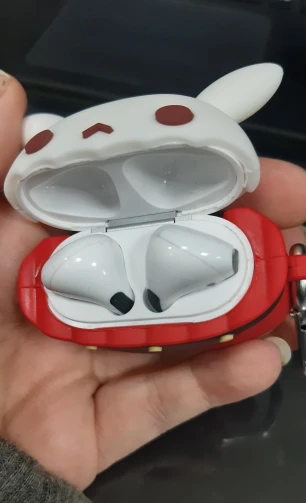 Требуется немного обрезки, но это незначительно, учитывая цену. Очень милый. Я бы посоветовал надеть низ (красный), прежде чем наконец надеть головку с закрытой airpod. И так, чтобы не выдавить верхнюю часть корпуса airpod слишком сильно в кроличью головку, чтобы это не стало проблемой закрытия.