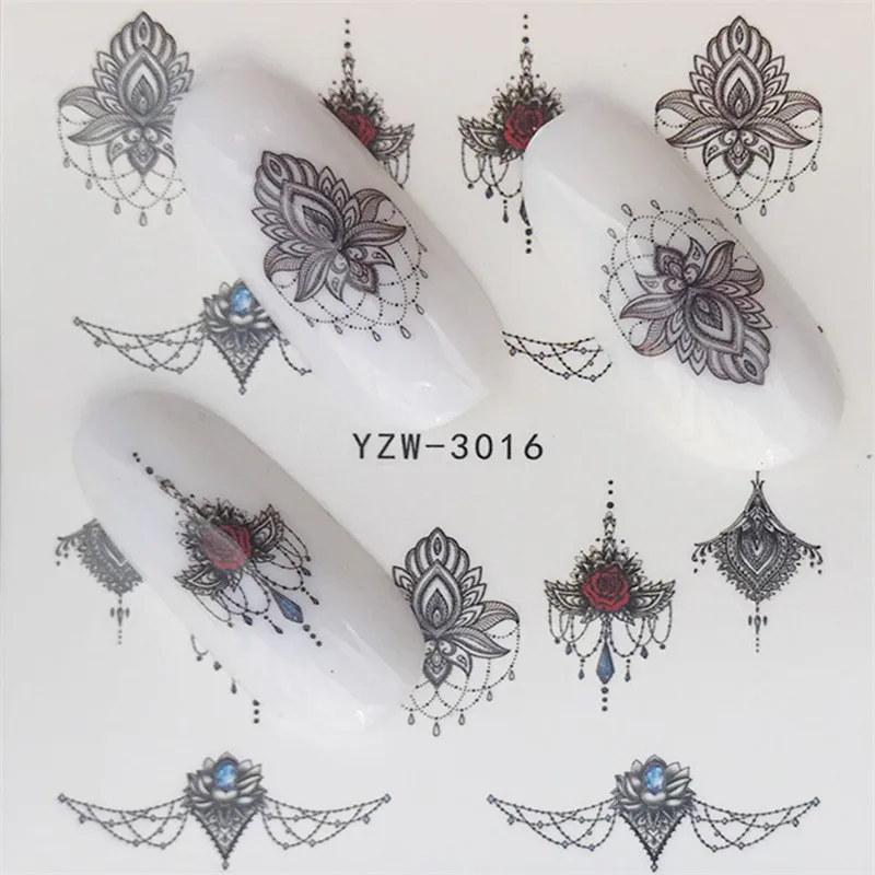 Лидер продаж, 1 лист водных переводных картинок для ногтей, благородное винтажное ожерелье с цветочным узором, переводные наклейки, украшения для ногтей, наклейки для ногтей