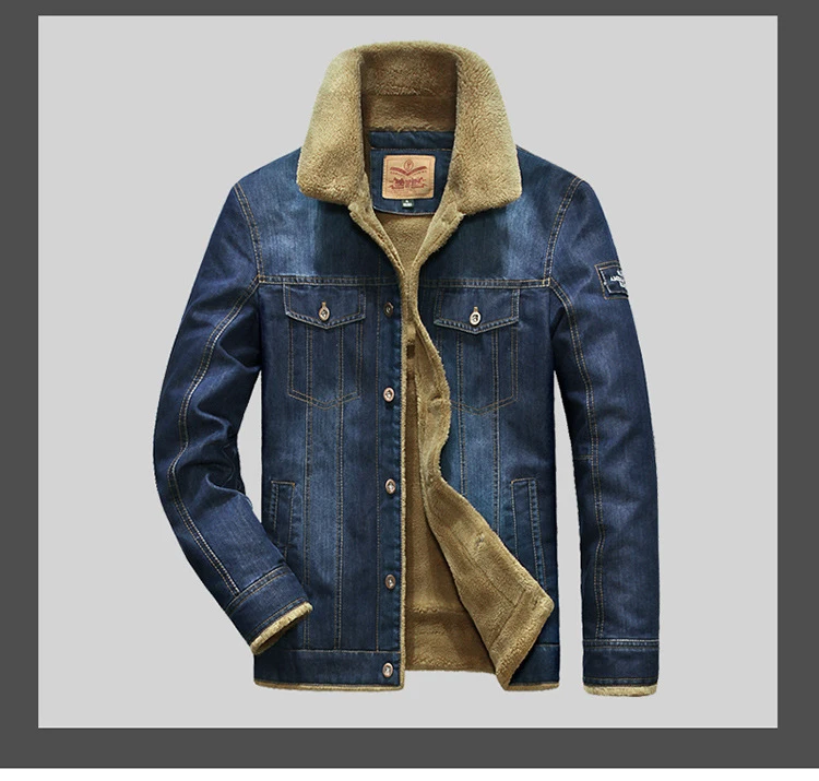 Зимняя джинсовая куртка L-6XL, Мужская ветровка, флисовые плотные т...