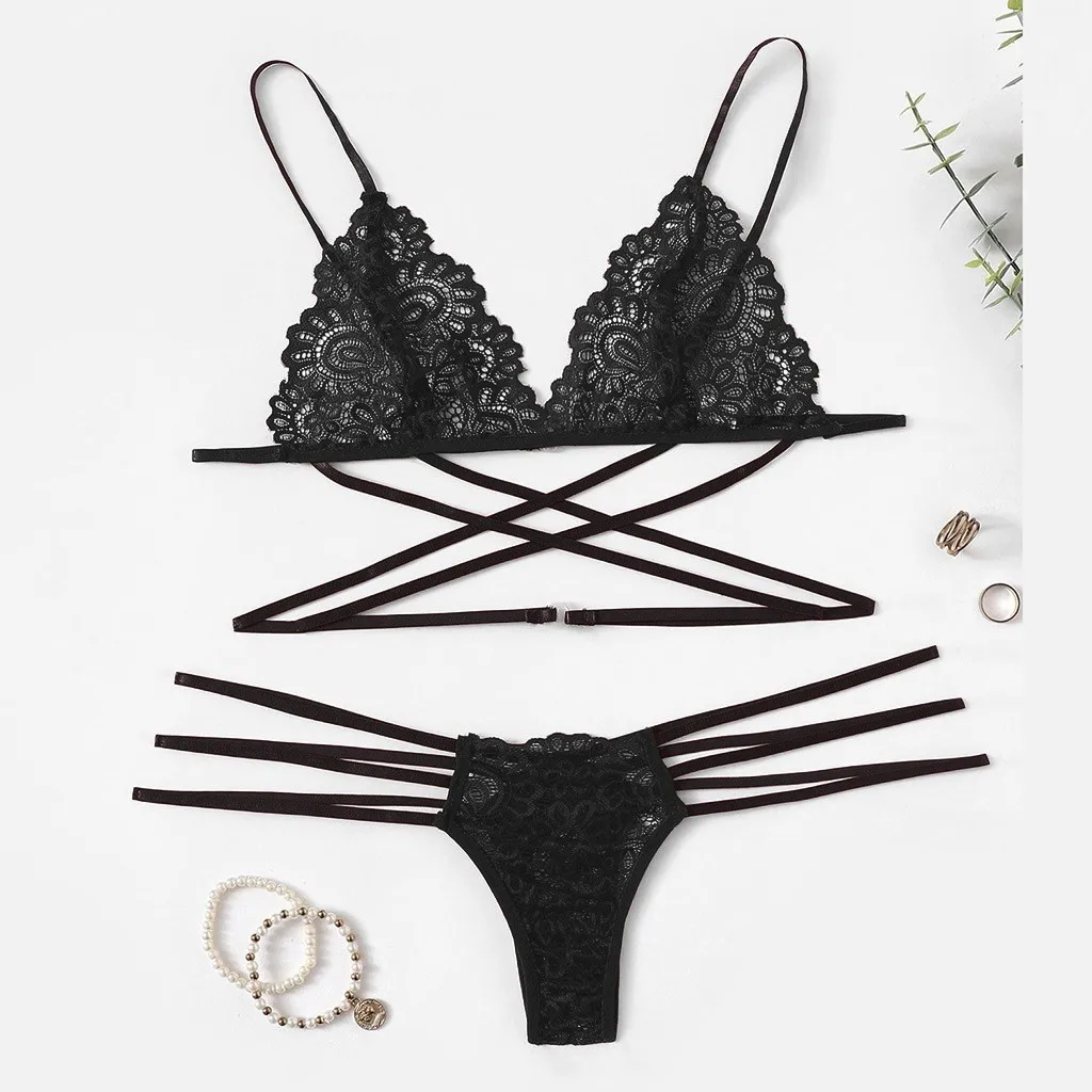 Комплект экзотического нижнего белья, женская одежда для сна, ажурн...