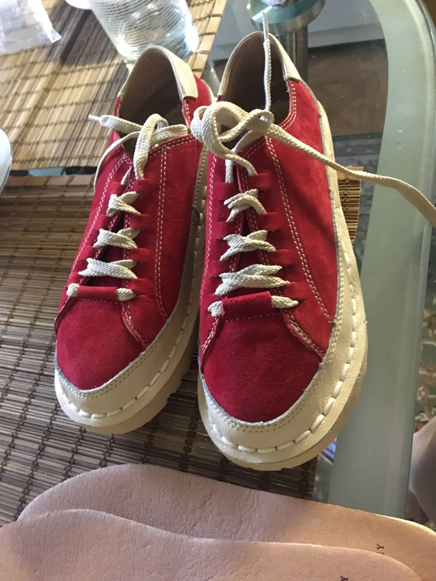 Кеды очень понравились, мягкие, из натуральной замши. Но, к сожалению, именно эта модель не соответствует размерной сетке, на свои 24см брала 38, оказались ровно на размер малы. Нога у меня не широкая,Имейте это в виду. Попробую оформить возврат. А так кеды очень понравились, советую. Отправили и пришли быстро.