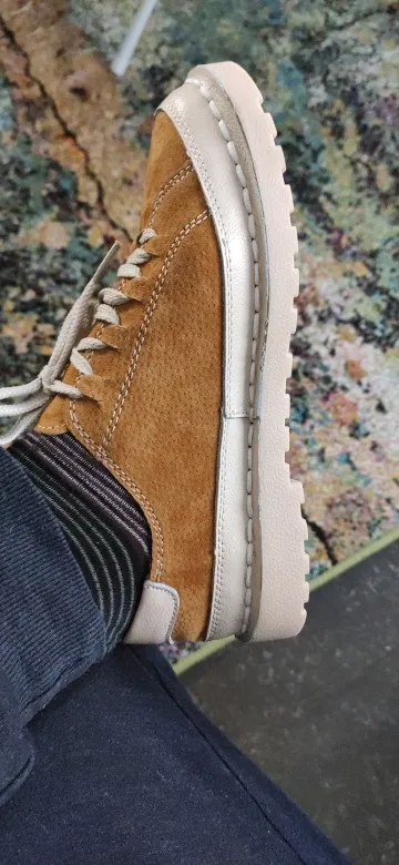 Так и не поняла, кожа это или нет. Но обувь мягкая, удобная, запаха нет. На 24,5 см в стопе отлично подошёл 39 размер. В реальности светлее, чем на картинке.