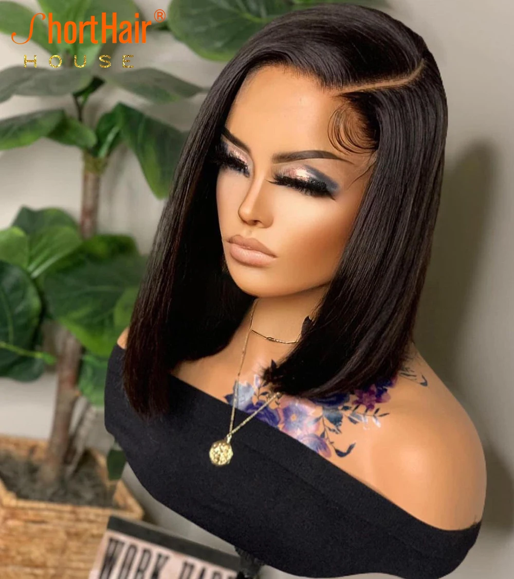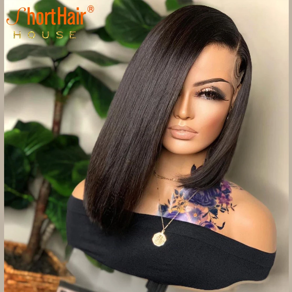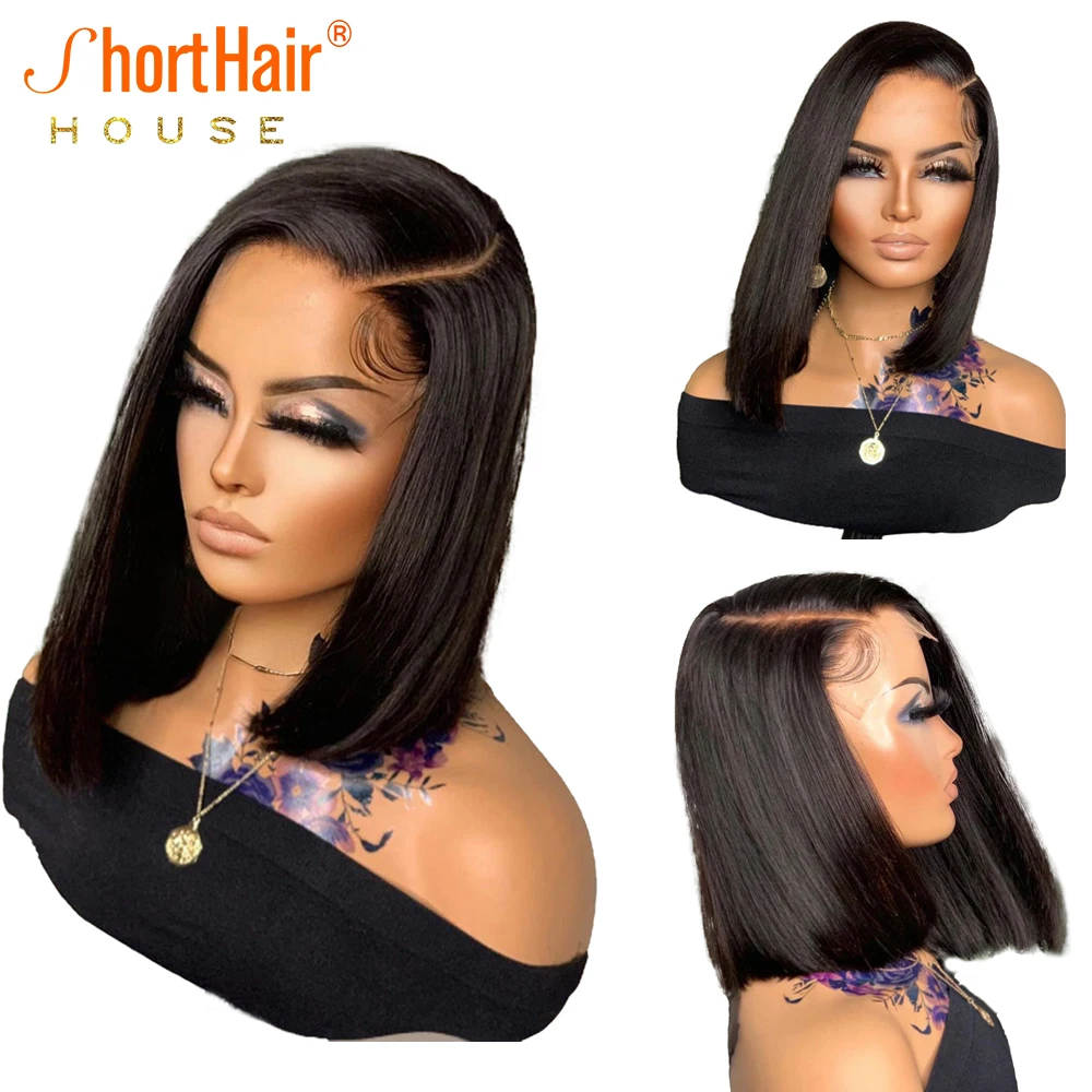 Парик с коротким вырезом, боковая часть, 13x 4, парик на сетке спереди, прямые человеческие волосы, парики для черных женщин, бразильские волосы без повреждений, плотность 250%