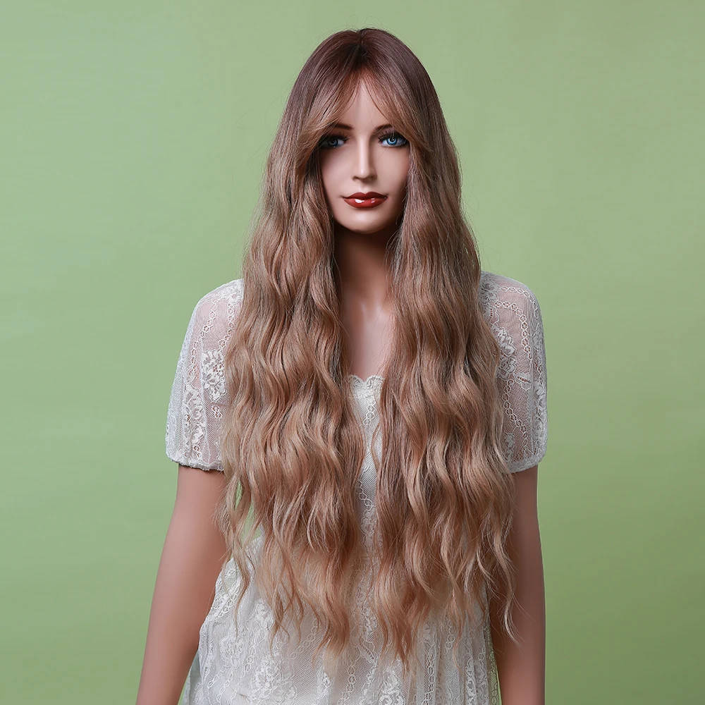 Парики из длинных синтетических волос с эффектом омбре, с челкой
