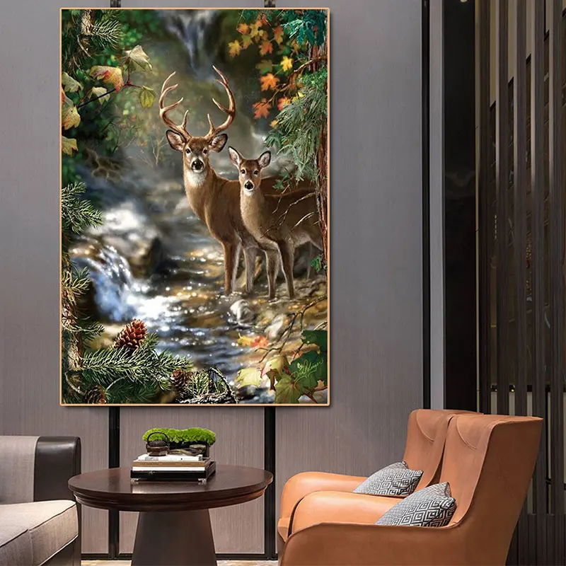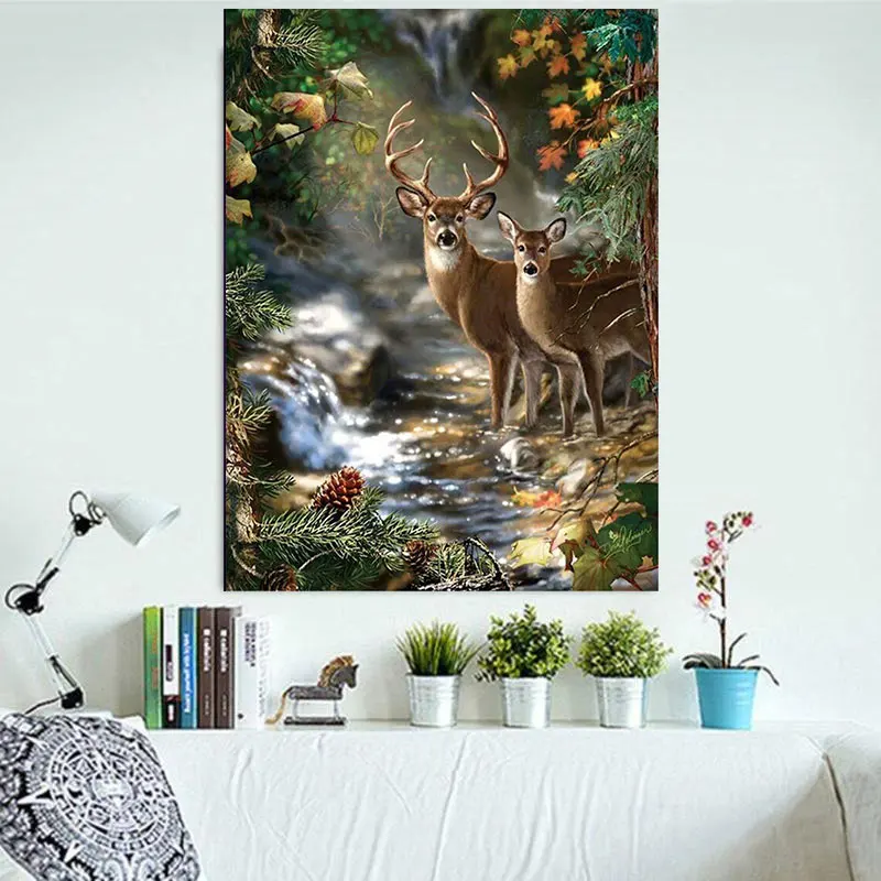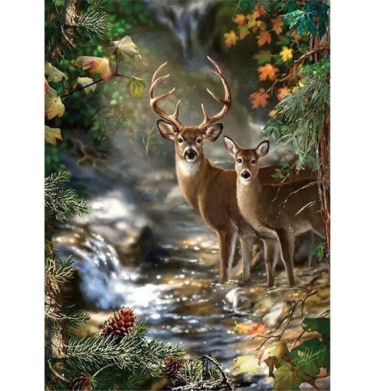 QIQING Алмазная картина сделай сам, квадратнаякруглая картина с изображением горного леса, оленя, шипа, ржавчины, крест, украшение для дома, подарки